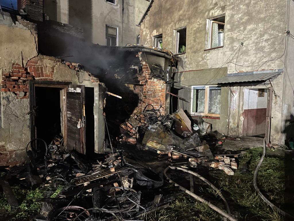 W dniu 27 lipca br. około godziny 1:35, do Stanowiska Kierowania Komendanta Powiatowego PSP w Górze, wpłynęło zgłoszenie o pożarze budynku mieszkalnego w miejscowości Wąsosz, przy ul. Plac Wolności. Po przybyciu na miejsce pierwszych zastępów Jednostek Ochrony Przeciwpożarowej, ogniem objęty był budynek gospodarczy oraz fragment poddasza sąsiedniego budynku mieszkalnego. Pożar był w pełni rozwinięty, a ogień zaczął wdzierać się do mieszkań przez zniszczone okna. Mieszkańcy opuścili samodzielnie budynki przed przybyciem straży pożarnej. Nikt z nich nie odniósł obrażeń. Działania prowadzono z użyciem trzech prądów gaśniczych, w tym jednym wprowadzonym do budynku mieszkalnego. W wyniku pożaru całkowitemu zniszczeniu uległ budynek gospodarczy. Częściowemu zniszczeniu i nadpaleniu uległy budynki mieszkalne sąsiadujące z objętym pożarem obiektem gospodarczym. W działaniach udział brało 10 zastępów JOP tj. cztery zastępy z JRG w Górze, jeden zastęp z JRG w Rawiczu, dwa zastępy z OSP Wąsosz, oraz po jednym zastępie z: OSP Wińsko, OSP Płoski i OSP Stara Góra. Dochodzenie w sprawie przyczyny powstania pożaru prowadzi KP Policji w Górze.