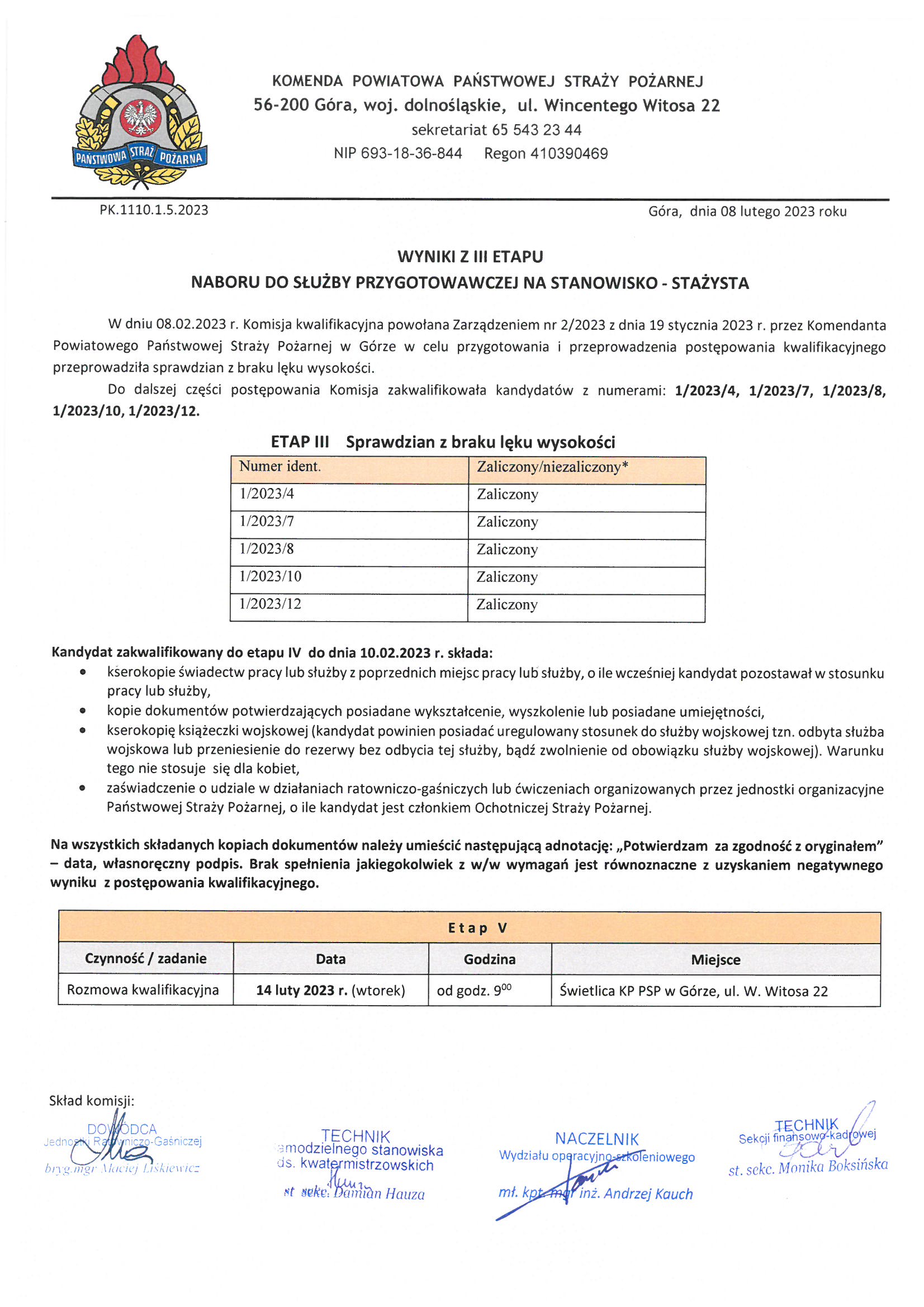 | W załączeniu wyniki z III etapu naboru do służby. | 1.0 | 09.02.2023 08:59 Andrzej Kauch |