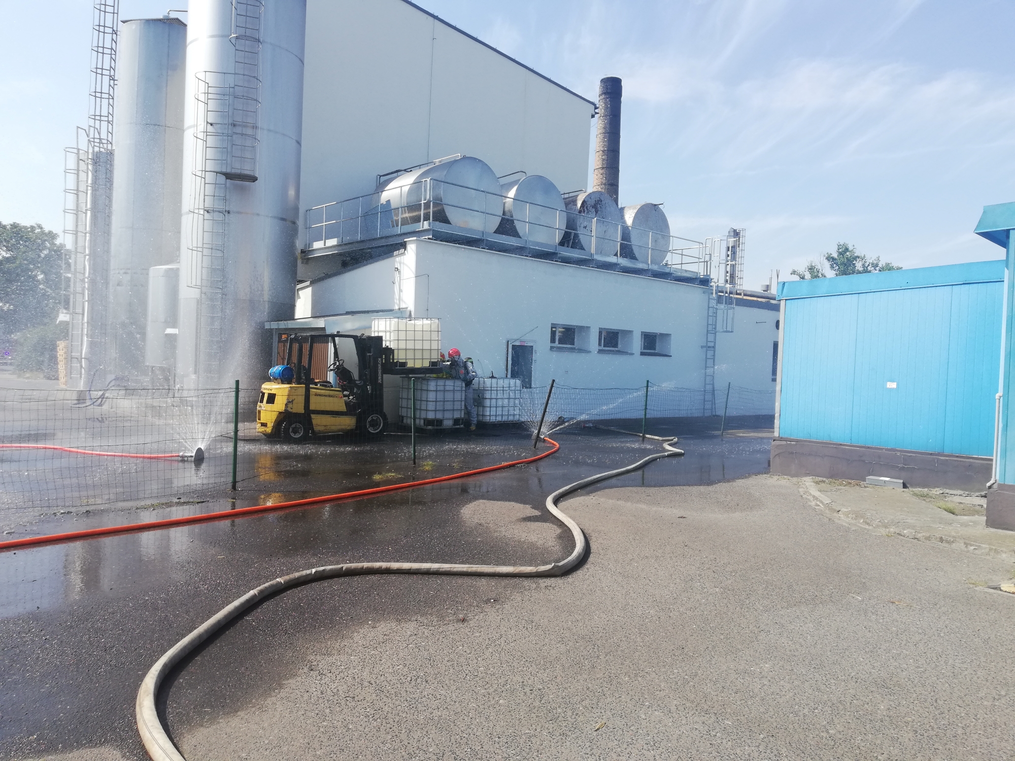 W dniu 20 lipca 2022 r. na terenie proszkowni mleka w Górze podczas transportu wózkiem widłowym zbiornika DPPL z wodą amoniakalną doszło do jego uszkodzenia, w wyniku czego wyciekło ok. 200 litrów cieczy. Do działań zadysponowano zastępy straży pożarnych z terenu powiatu górowskiego oraz grupę chemiczną z KM PSP w Lesznie. W sumie w działaniach uczestniczyło 14 zastępów PSP i OSP. Działania w pierwszej fazie polegały na zabezpieczeniu miejsca zdarzenia poprzez zablokowanie drogi pojazdami ratowniczo-gaśniczymi na odcinku ok. 200 m i wstrzymanie ruchu pieszego przy zakładzie. Następnie ratownicy zabezpieczeni w ubrania Tychem i aparaty OUO umieścili wokół zbiornika kurtyny wodne mające na celu ograniczenie strefy parowania wydostającej się substancji. Wyznaczono także strefę bezpieczną. Strażacy podjęli również próbę uszczelnienia uszkodzonego zbiornika, jednak z uwagi na materiał z jakiego zbiornik został wykonany i umiejscowienie uszkodzenia, nie zatamowano wycieku. Podjęto decyzję o przelaniu cieczy do zastępczego zbiornika. Czynność tą wykonali ratownicy z grupy chemicznej z Leszna. Po wykonaniu powyższych czynności zakończono działania, a miejsce zdarzenia przekazano kierownikowi obiektu. Na miejsce działań przybyła grupa operacyjna Dolnośląskiego Komendanta Wojewódzkiego PSP we Wrocławiu oraz przedstawiciel Powiatowego Centrum Zarządzania Kryzysowego w Górze. O zdarzeniu poinformowano Wojewódzkiego Inspektora Ochrony Środowiska we Wrocławiu.