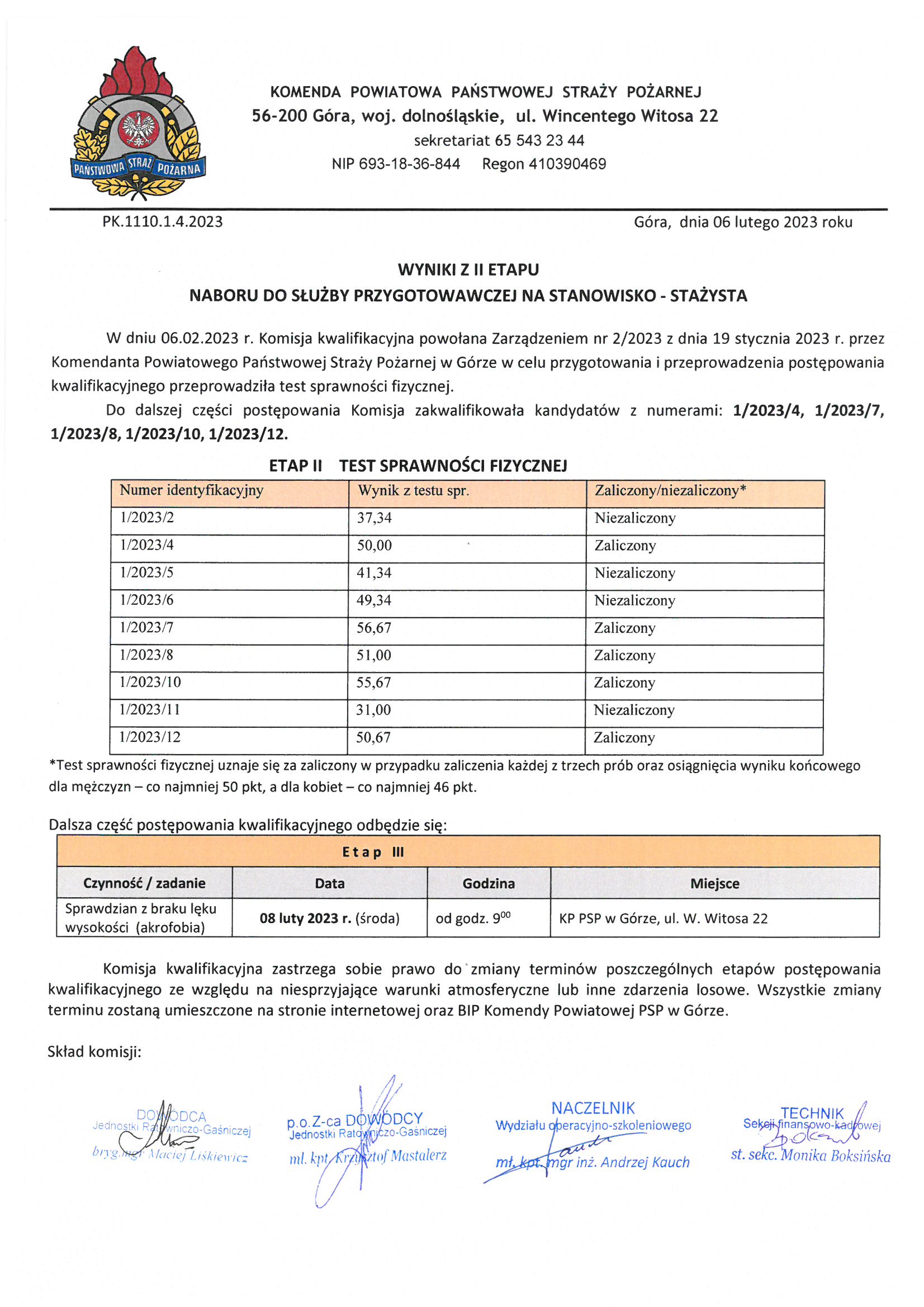 | Wyniki II etapu naboru do służby | 1.0 | 09.02.2023 09:00 Andrzej Kauch |