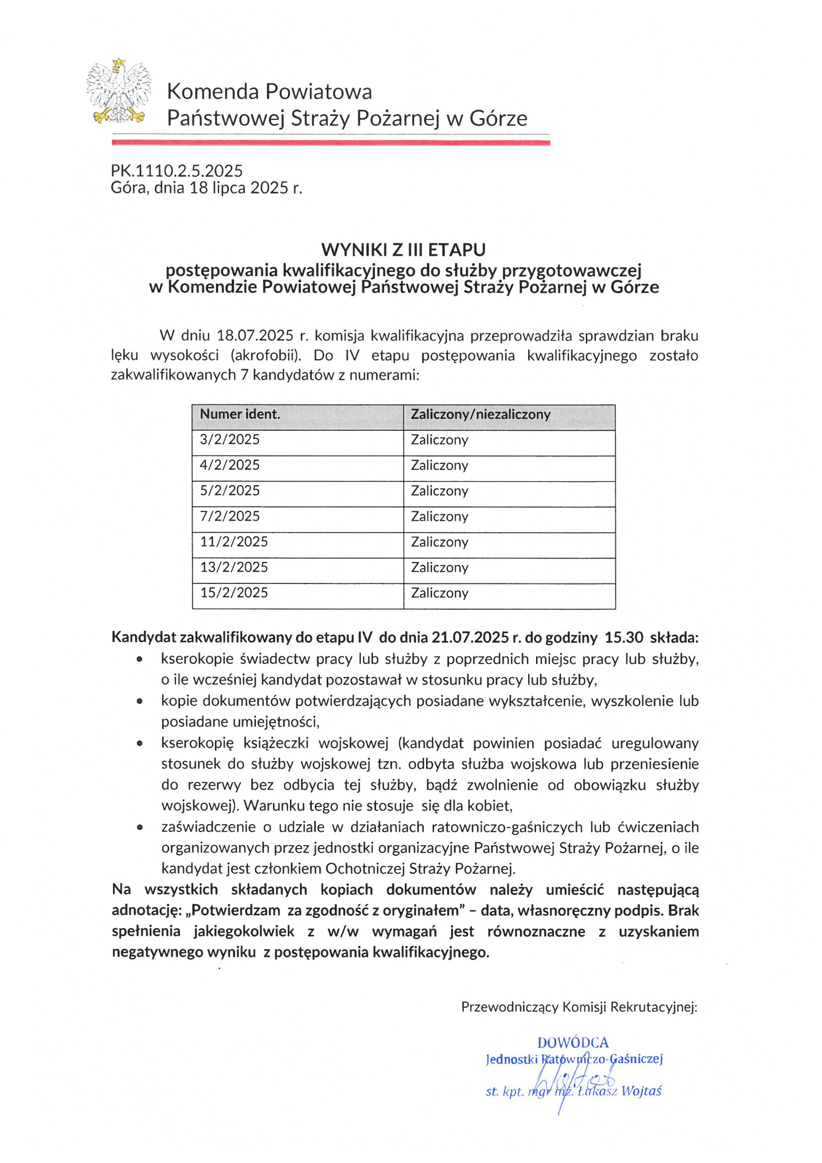 Wyniki z III etapu naboru do służby 18.07.2025 Wyniki z III etapu naboru do służby Zdjęcia (1) Pokaż zdjęcie 1 z galerii.