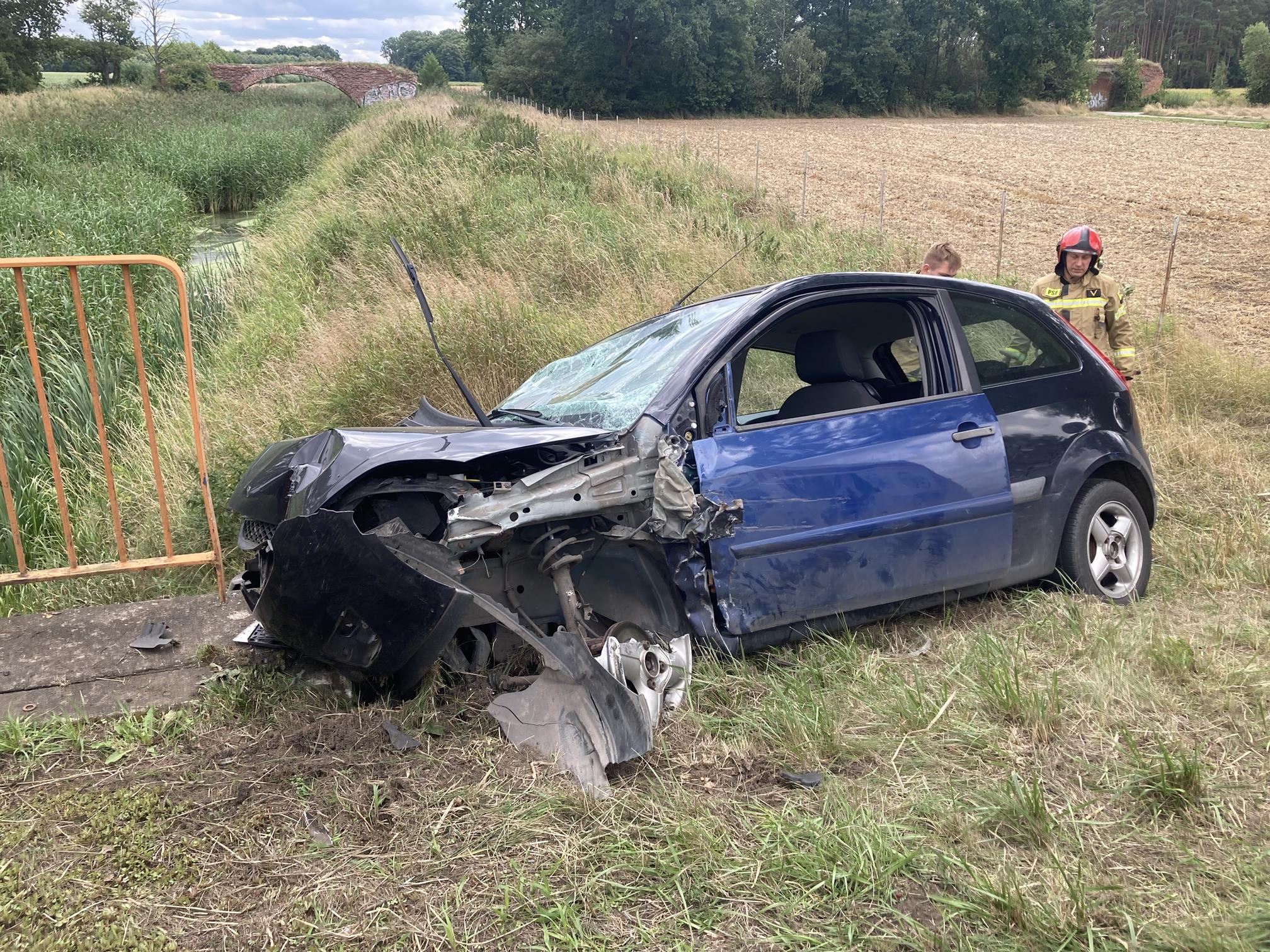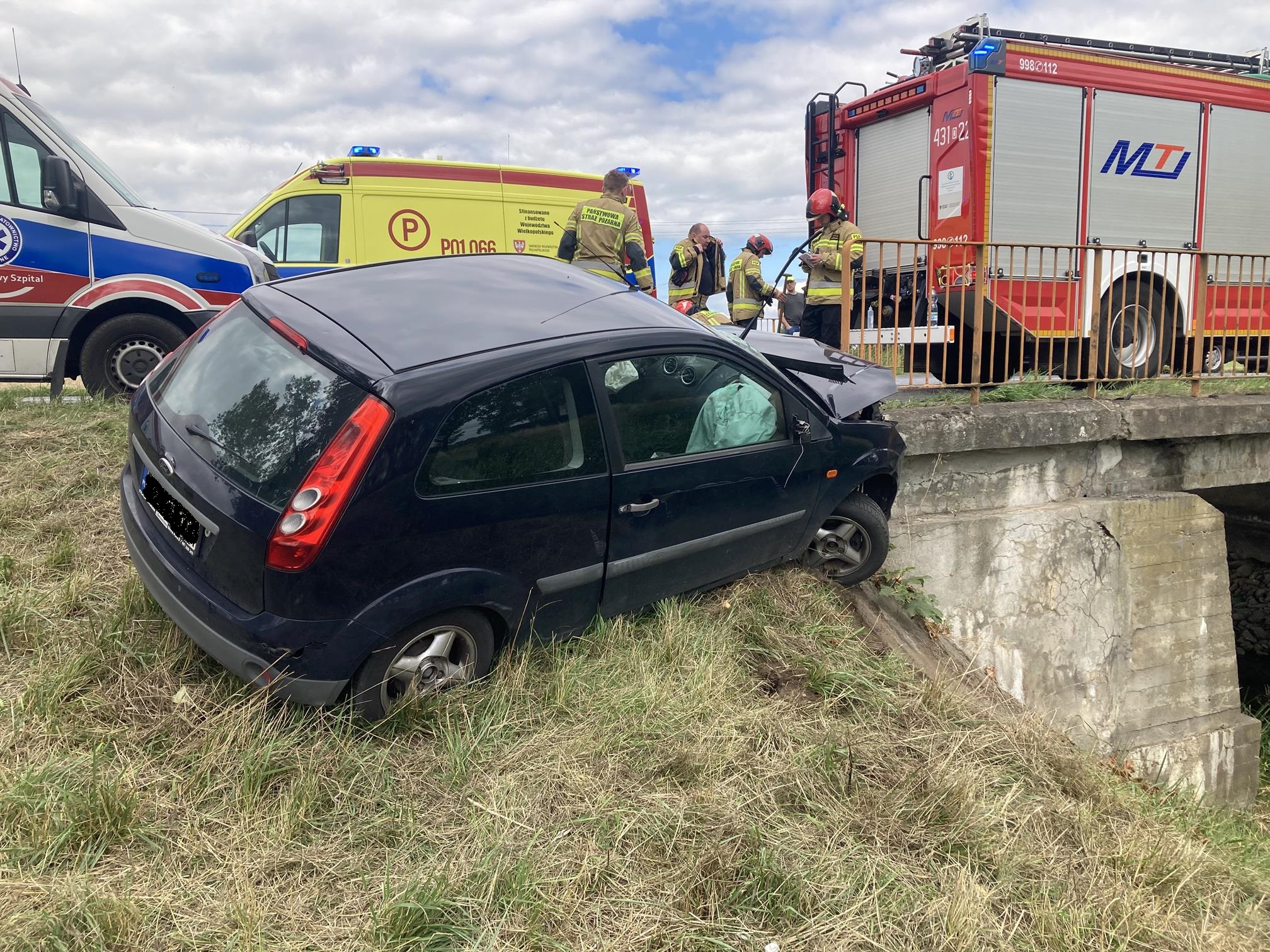 Po przyjeździe na miejsce zdarzenia okazało się, że w zdarzeniu uczestniczyły dwa pojazdy Ford Fiesta oraz Kia Rio. Kierowca pierwszego pojazdu uderzył w przepust betonowy na Rowie Śląskim pojazdem tym podróżowały łącznie cztery osoby w odległości ok. 50 m znajduje się na poboczu uszkodzony drugi pojazd, którym podróżowały dwie osoby. Wszyscy uczestnicy zdarzenia byli przytomni i znajdowali się na zewnątrz pojazdów.