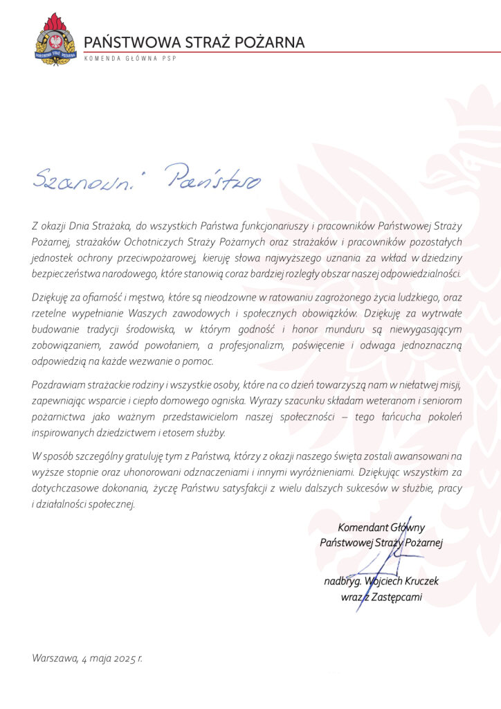 Życzenia Komendanta Głównego PSP z okazji Dnia Strażaka 04.05.2025 Zdjęcia (1) Pokaż zdjęcie 1 z galerii.