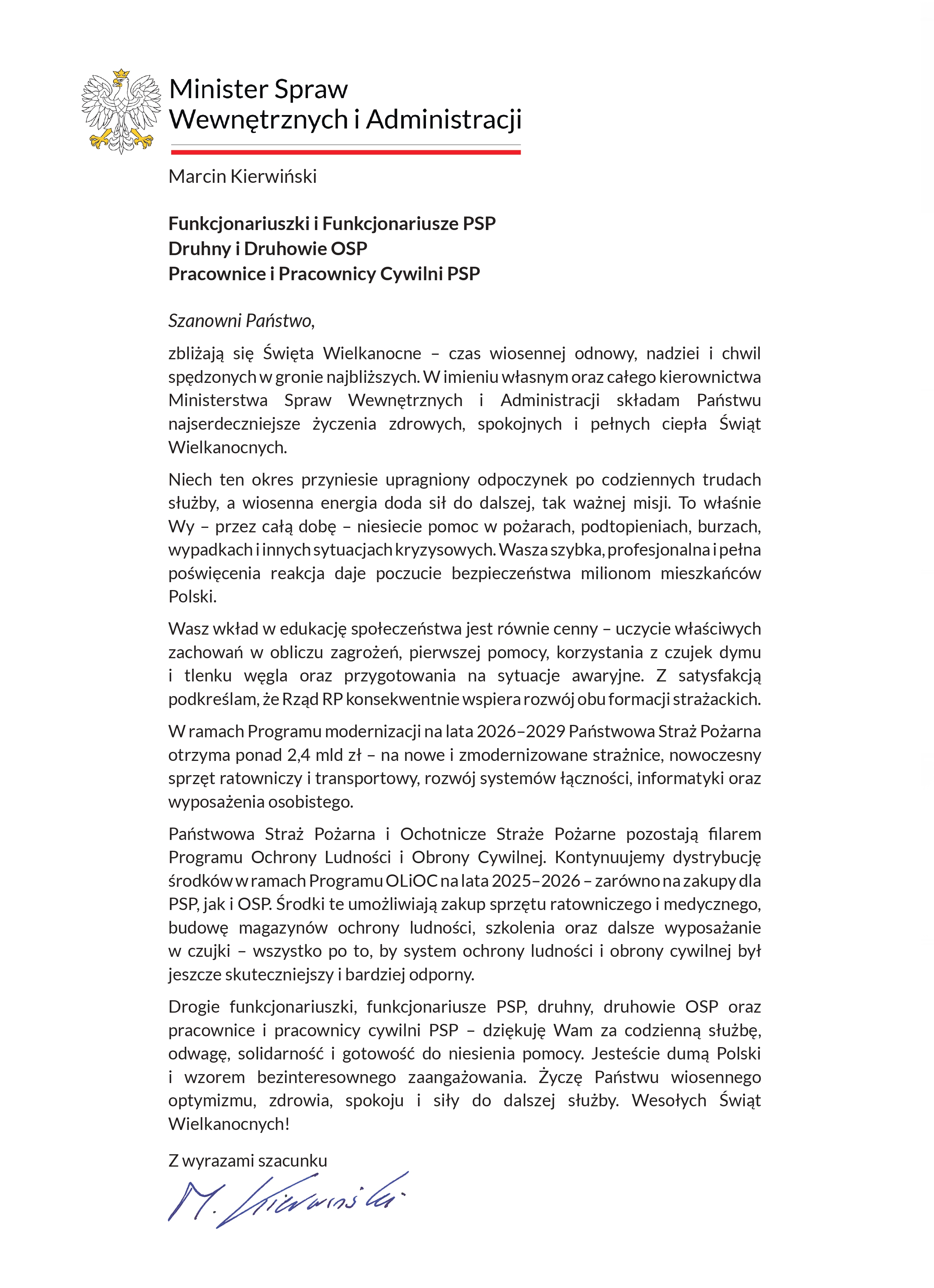 Życzenia Wielkanocne MSWiA