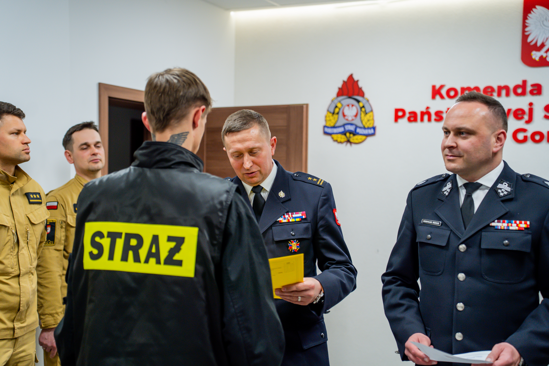 W uroczystym zakończeniu szkolenia udział wzięli z-ca komendanta powiatowego PSP bryg. Dariusz Surmacz, prezes ZOP ZOSP RP Gorlice dh Przemysław Wszołek oraz komendanci gminni ZOSP RP z terenu powiatu gorlickiego.