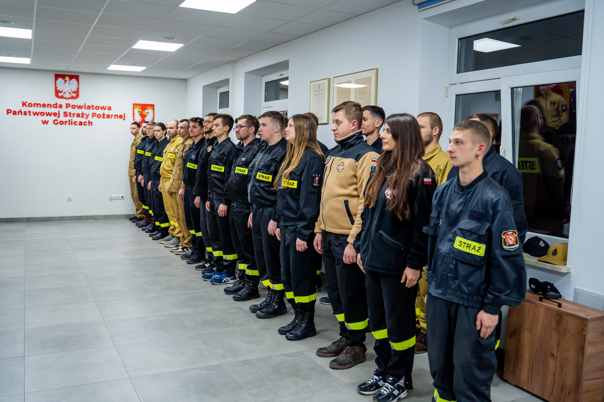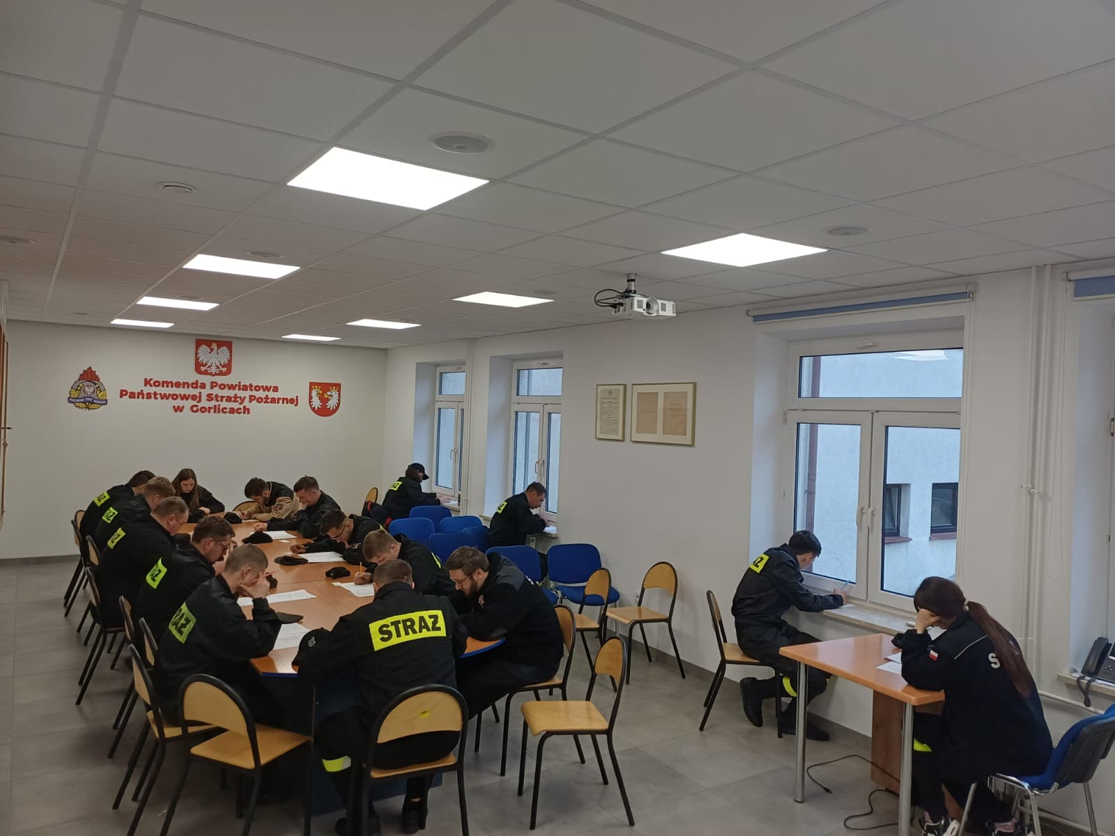 30 marca 2026 r. 29 druhów z jednostek Ochotniczych Straży Pożarnych z powiatu gorlickiego przystąpiło do egzaminu kończącego szkolenie podstawowe strażaków ratowników OSP.
