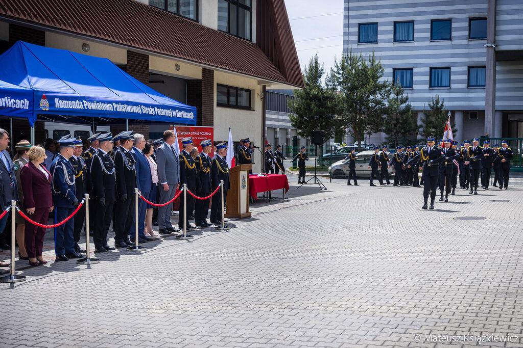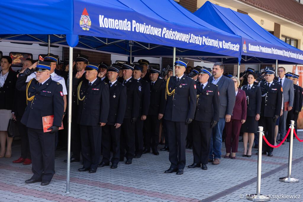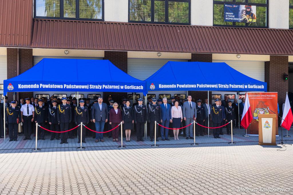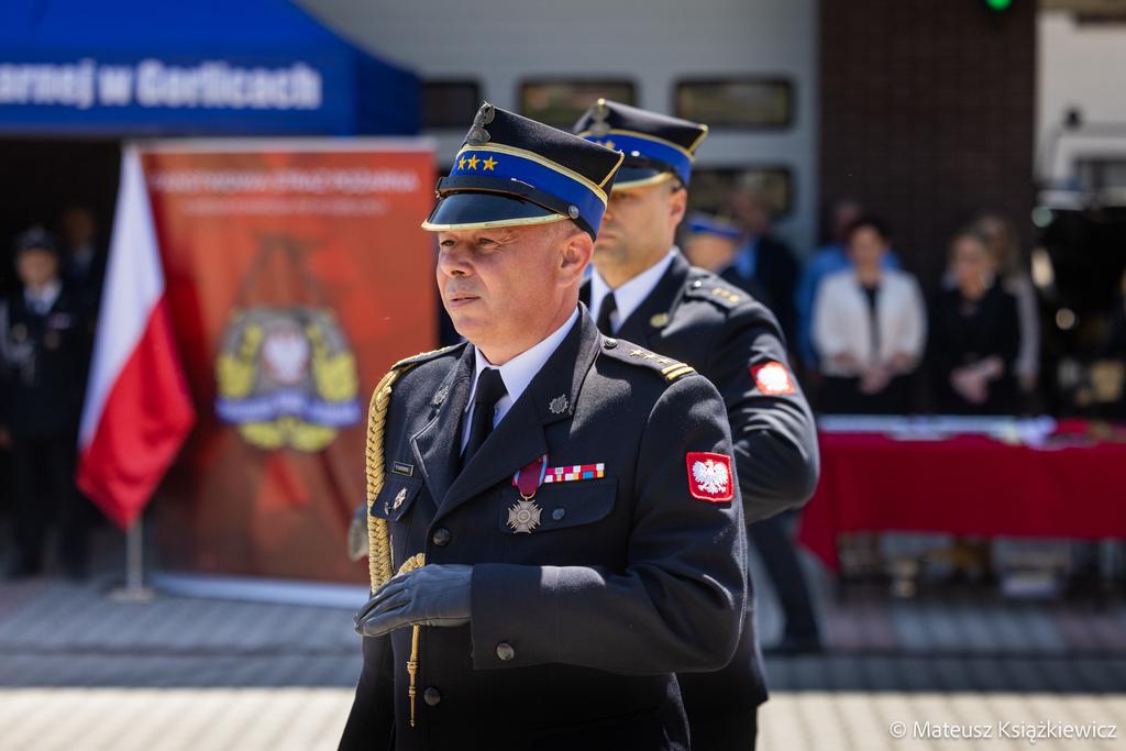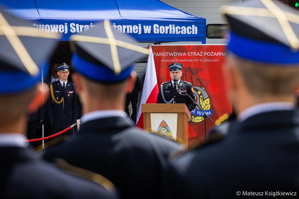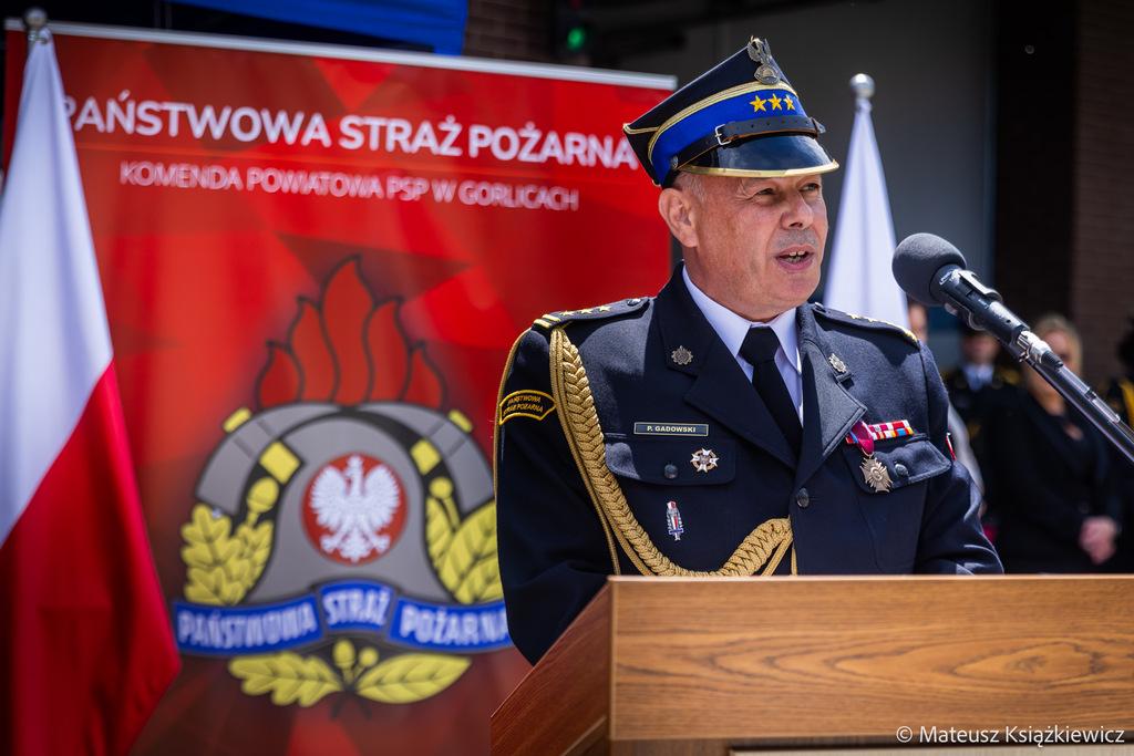 Następnie komendant powiatowy PSP w Gorlicach mł. bryg. Waldemar Krok przywitał zaproszonych gości i przedstawił bieżącą działalność Komendy Powiatowej PSP w Gorlicach oraz podziękował strażakom Państwowej Straży Pożarnej, pracownikom cywilnym, a także druhom jednostek Ochotniczych Straży Pożarnych za profesjonalizm, gotowość operacyjną i trud włożony w działania ratowniczo-gaśnicze. Słowa podziękowania skierował także do parlamentarzystów, samorządowców, przedstawicieli instytucji, służb i osób wspierających pożarnictwo na ziemi gorlickiej.