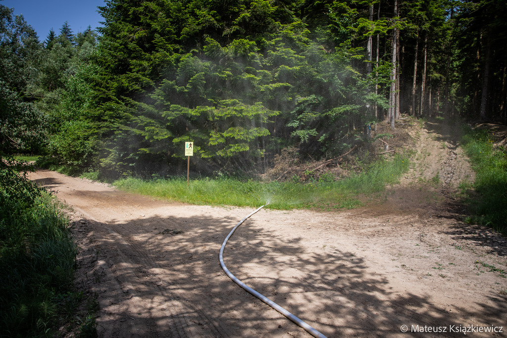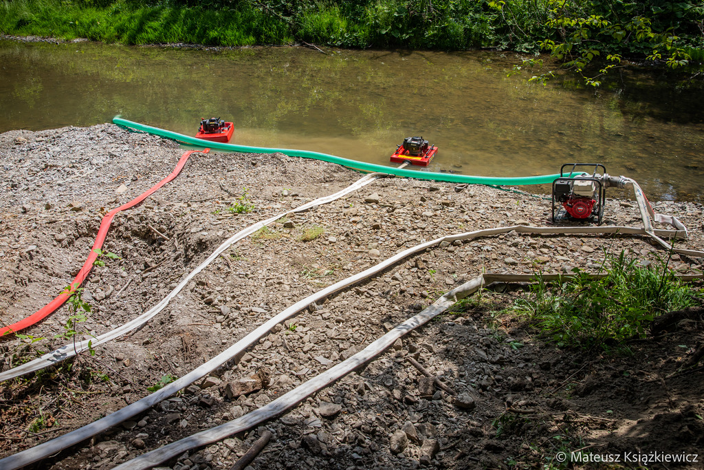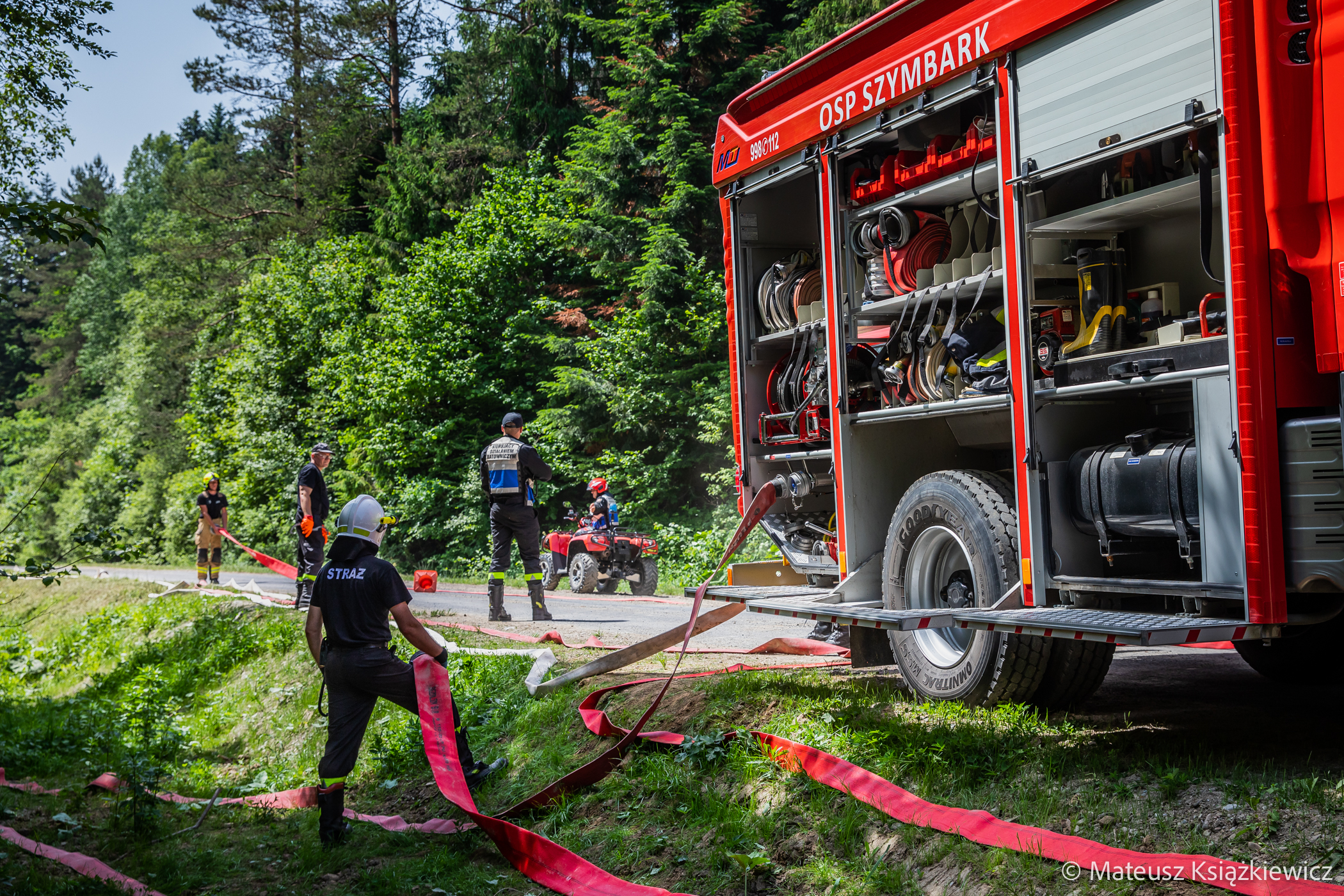 Strażacy mieli za zadanie w pierwszym etapie akcji prowadzić skuteczne działania gaśnicze w obronie oraz zorganizować zaopatrzenie wodne w oparciu o system dowożenia, przepompowywania i przetłaczania. Zaopatrzenie wodne strażacy mieli zorganizować z potoku Zdynianka wykorzystując motopompy dostarczając wodę na odległość około 1200 m do miejsca pożaru.