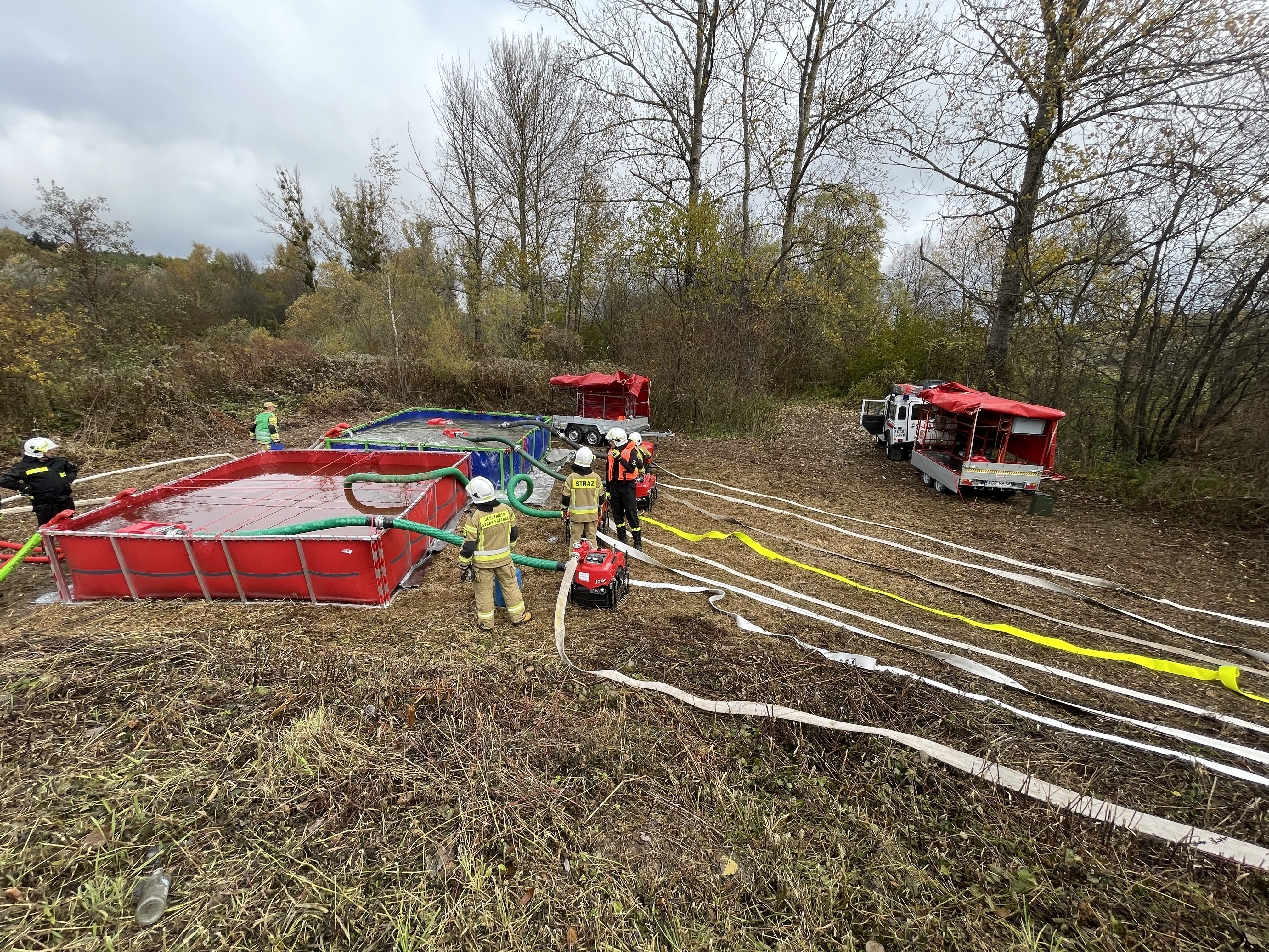 - utworzenie buforu wodnego z użyciem zbiorników brezentowych o pojemności 13 m3,