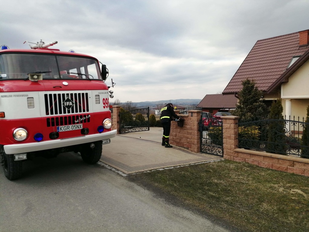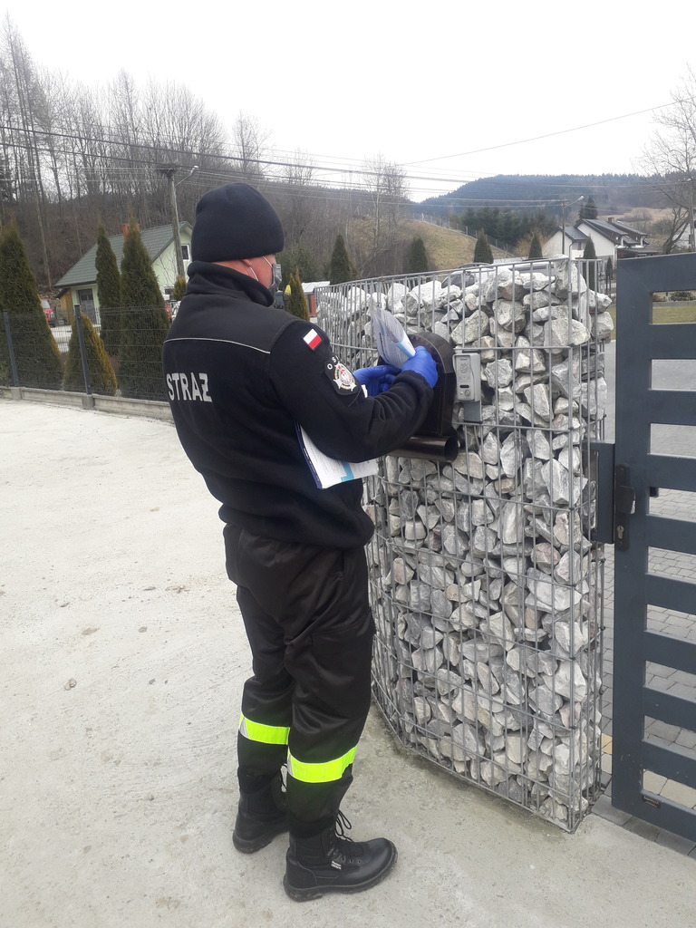 Druhowie z OSP z powiatu gorlickiego zaangażowani w dystrybuowanie materiałów informacyjnych na temat szczepień przeciwko COVID-19
