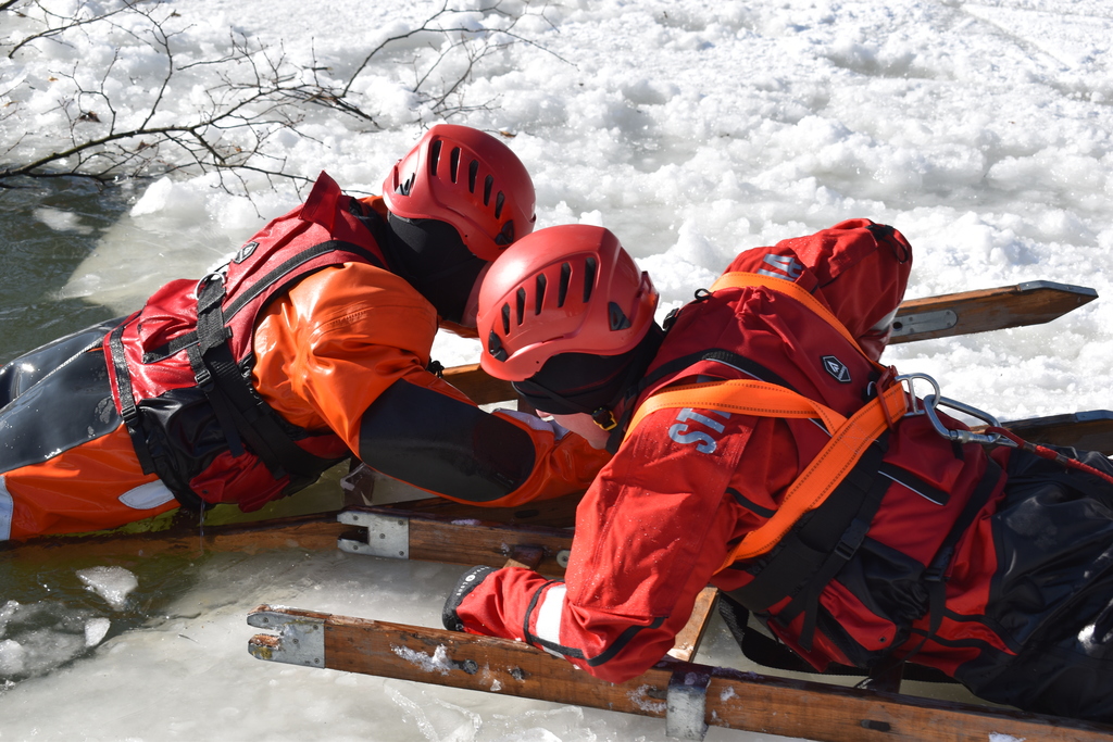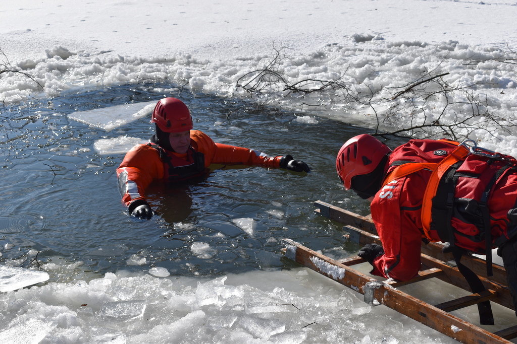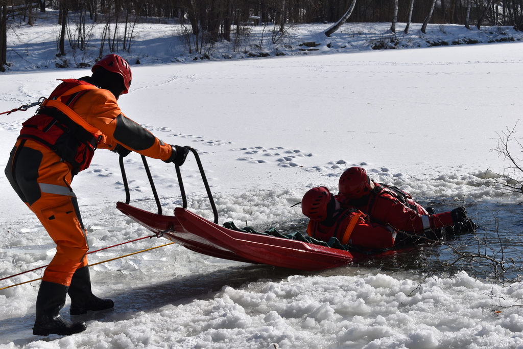 -działania ratownicze na lodzie: właściwe zabezpieczenie miejsca zdarzenia, podejmowanie osób z wody z wykorzystaniem sprzętu będącego na wyposażeniu JRG oraz samoratowanie.