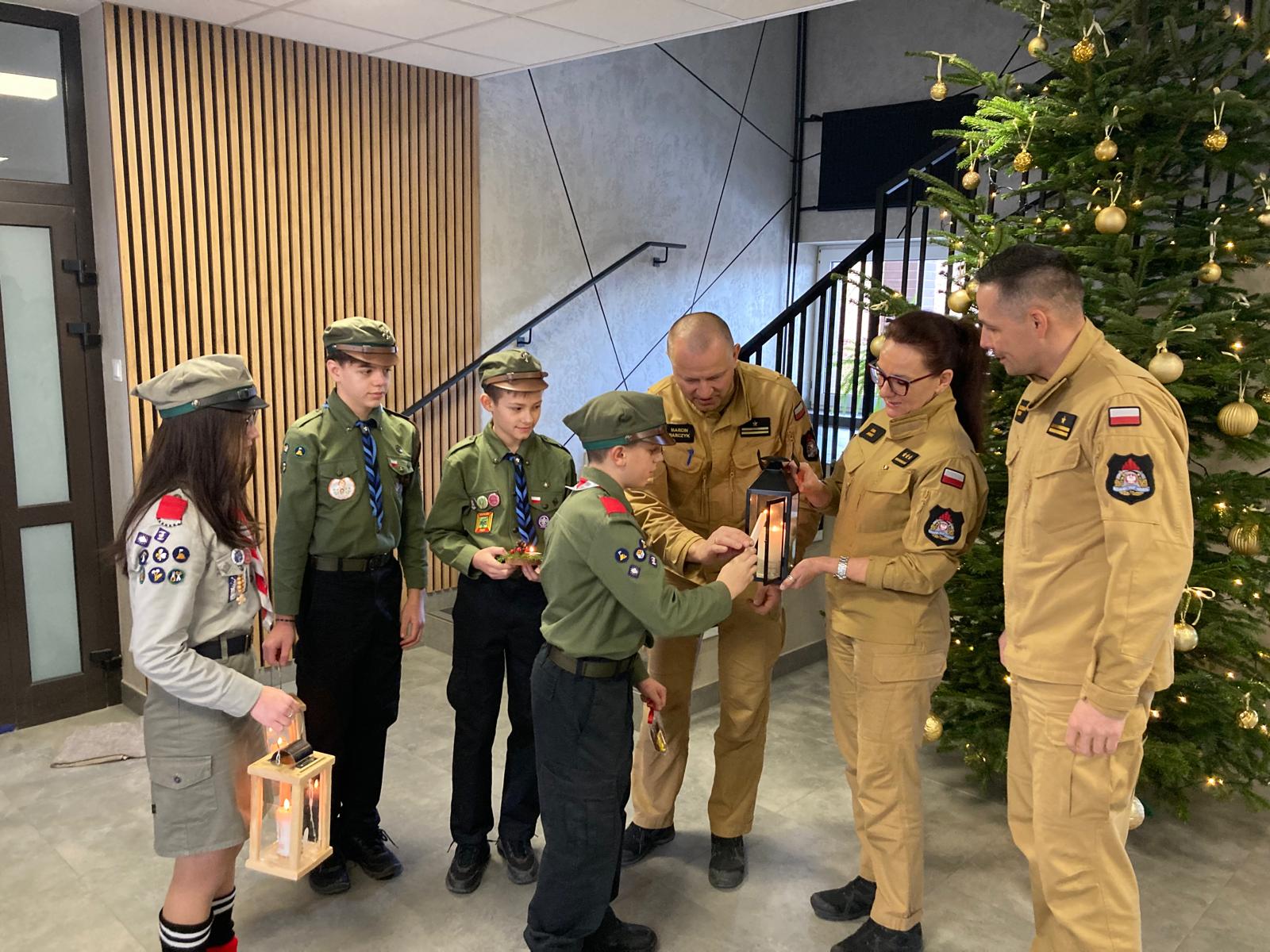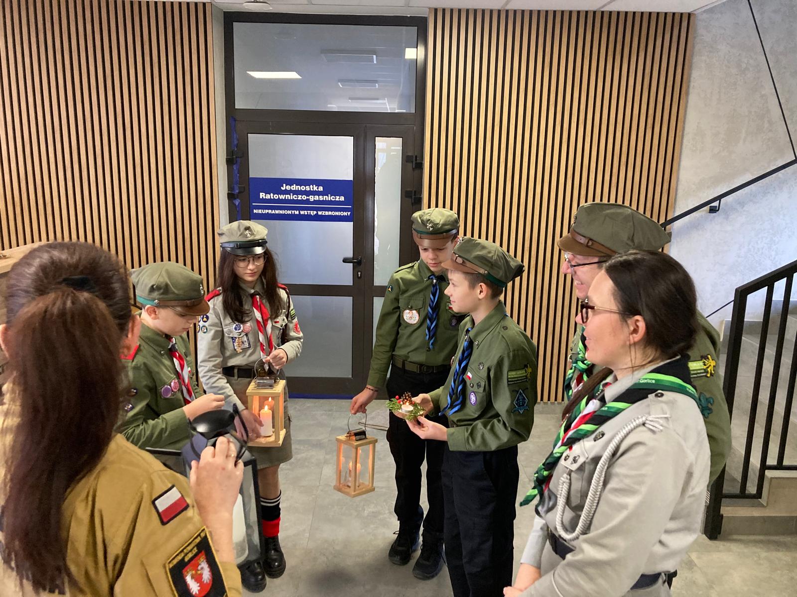 Harcerze z Hufca ZHP Gorlice im. hm. Marii Rydarowskiej w Gorlicach złożyli wizytę w Komendzie Powiatowej Państwowej Straży Pożarnej w Gorlicach, przynosząc Betlejemskie Światło Pokoju – wyjątkowy symbol pokoju, nadziei i solidarności między ludźmi. Ogień zapalony w Betlejem, przekazywany z rąk do rąk przez skautów w całej Europie, każdego roku trafia także do miejsc, w których na co dzień pełniona jest służba dla innych.