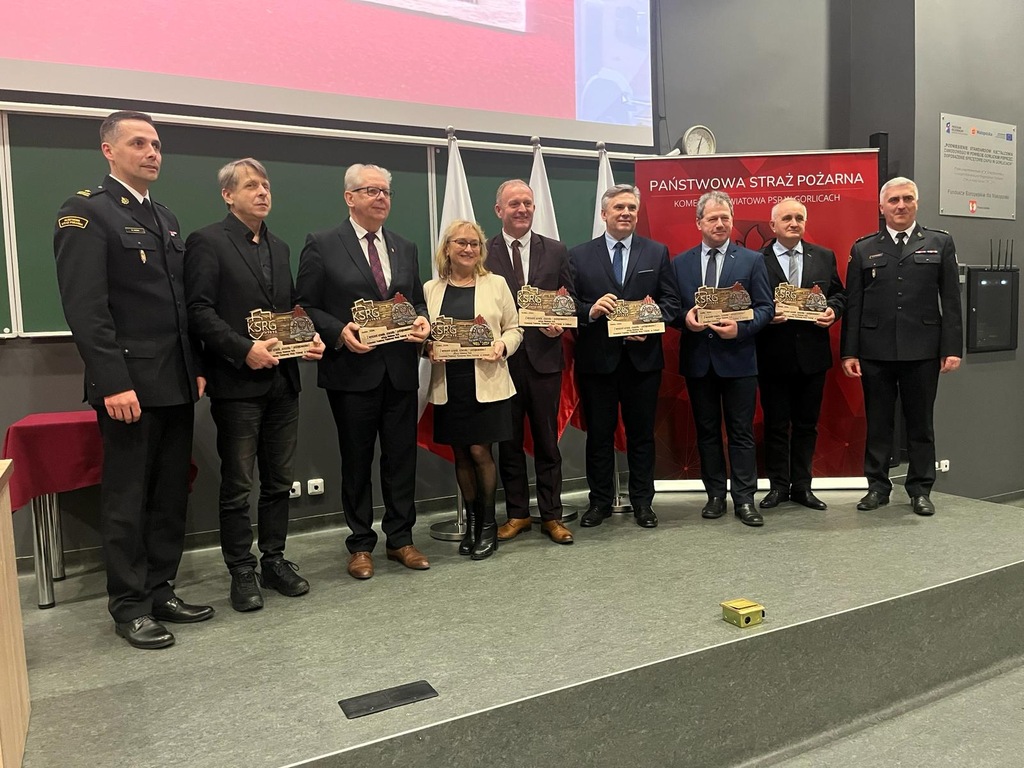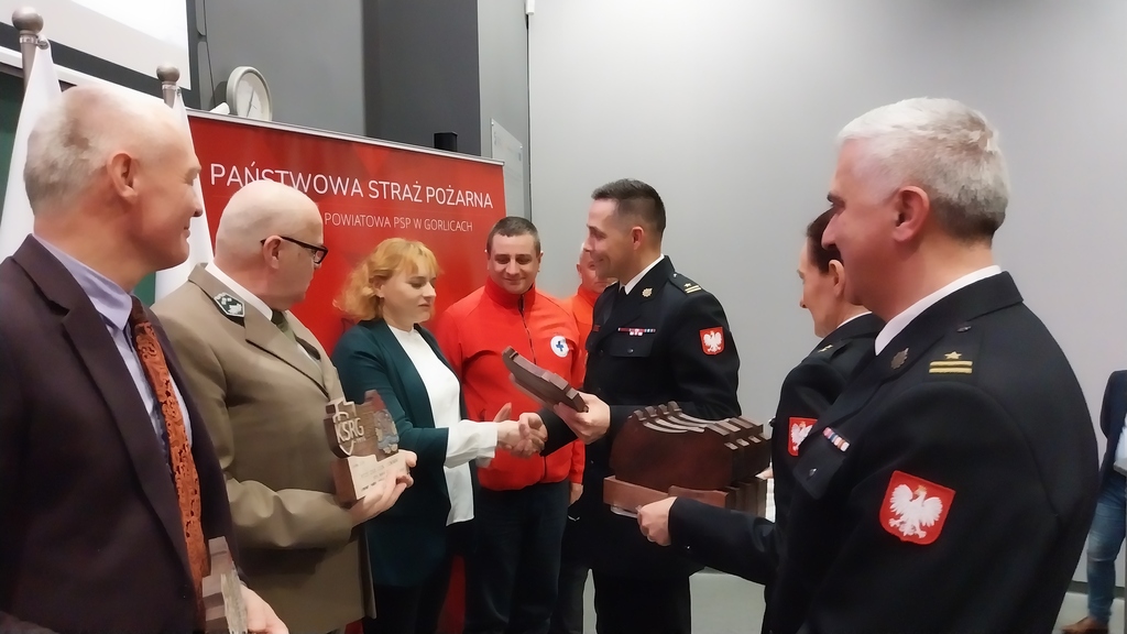 Komendant powiatowy PSP w Gorlicach mł. bryg. Waldemar Krok podziękował wszystkim osobom, które w 2023 roku wniosły swój wkład w rozwój ochrony przeciwpożarowej na terenie powiatu gorlickiego wręczając pamiątkowe statuetki.