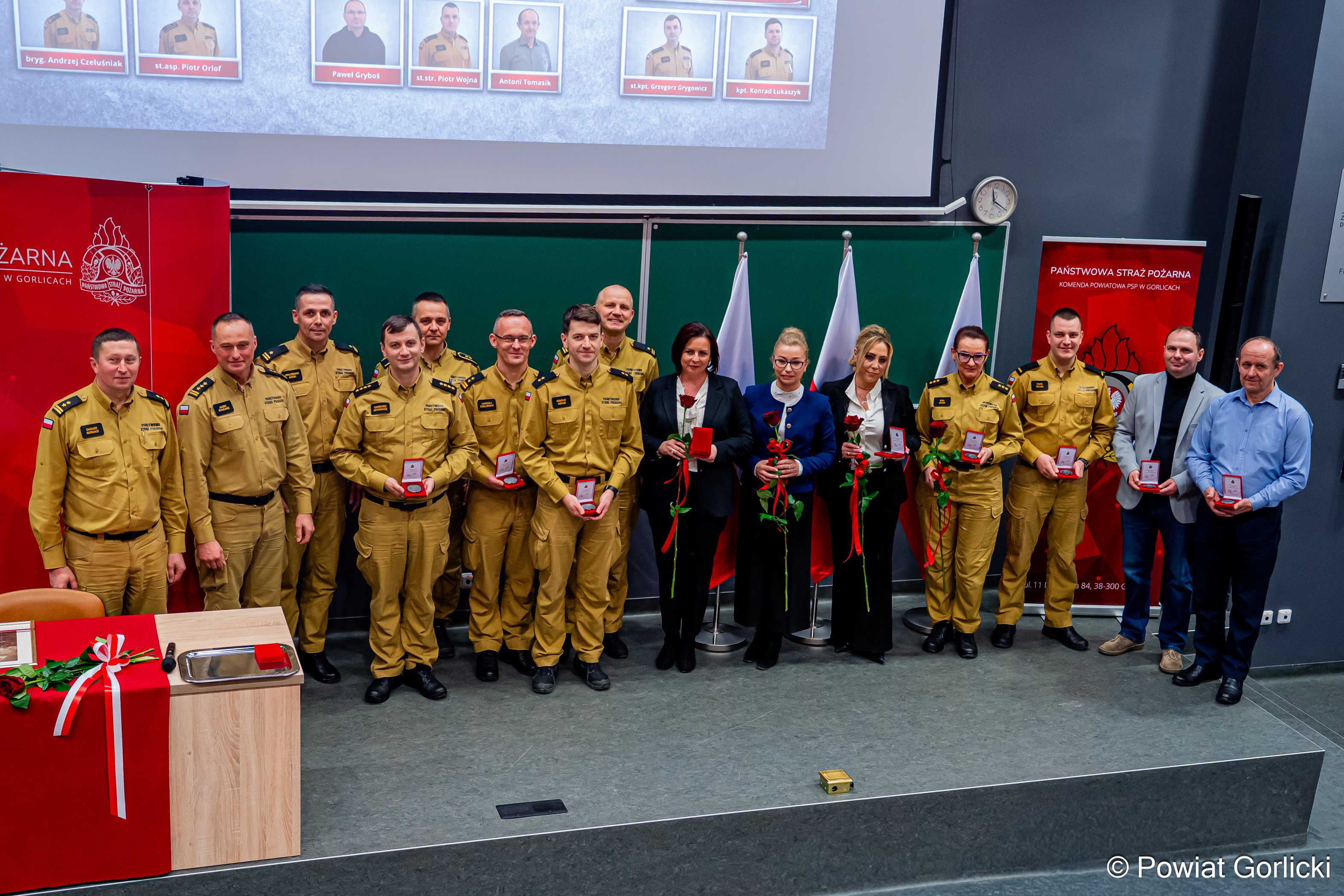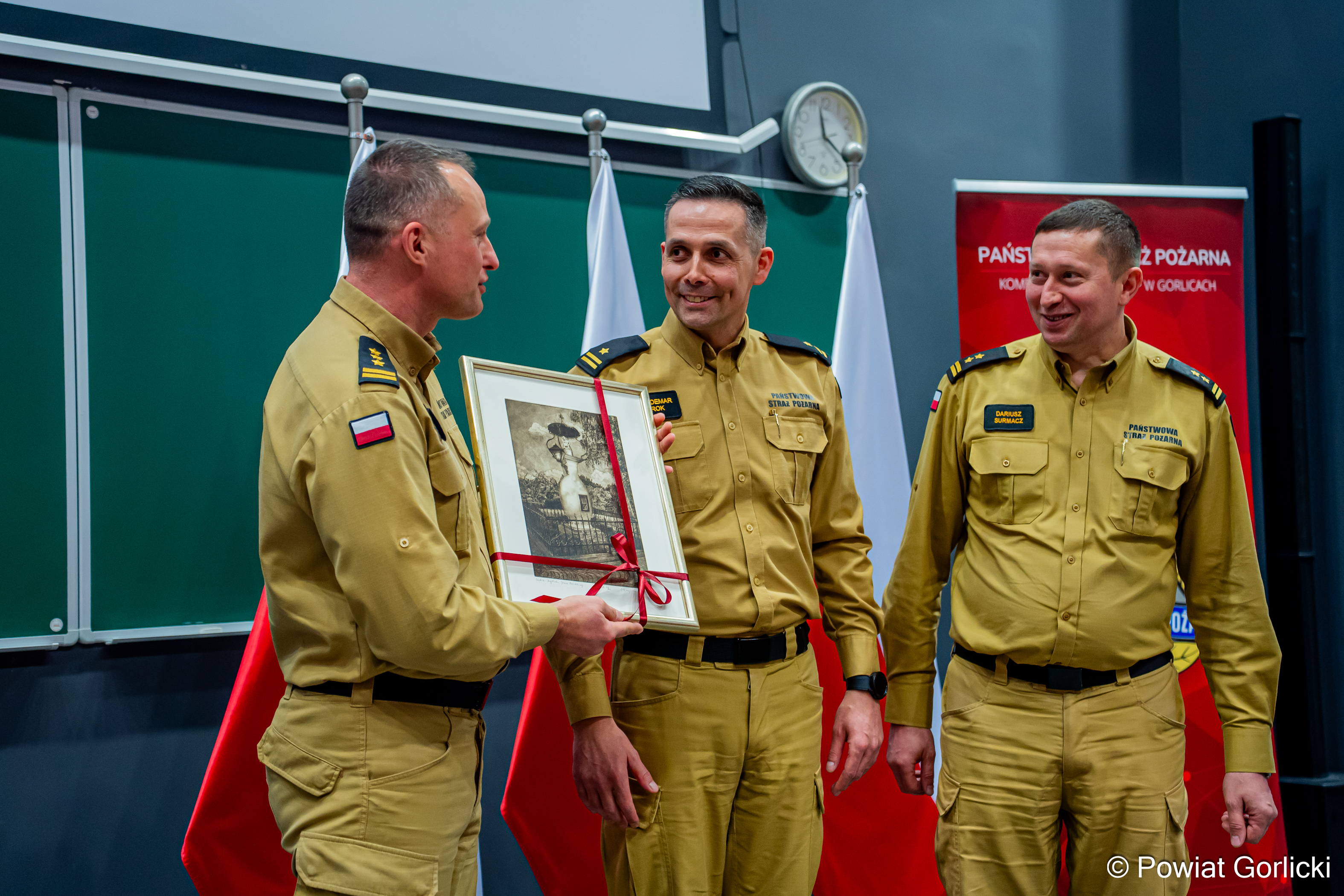 Komendant powiatowy PSP w Gorlicach mł. bryg. Waldemar Krok podziękował wszystkim osobom, które w 2025 roku wniosły swój wkład w rozwój ochrony przeciwpożarowej na terenie powiatu gorlickiego w tym funckjonariuszom i pracownikom cywilnym Komendy Powiatowej PSP w Gorlicach.