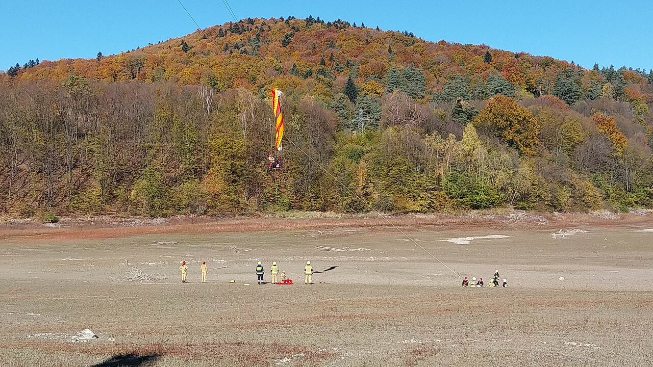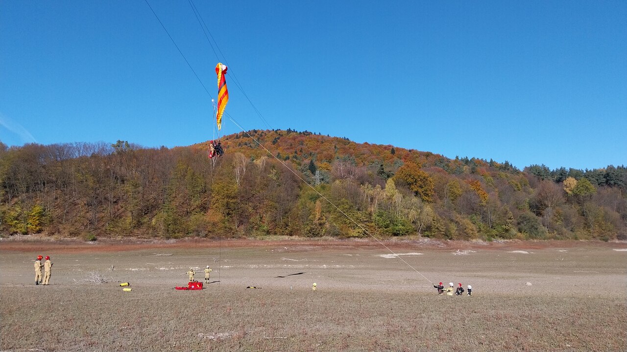 24 października br. strażacy zostali zadysponowani do paralotniarza, który zawisł na liniach energetycznych nad Jeziorem Klimkówka w miejscowości Uście Gorlickie. Po przybyciu na miejsce zdarzenia pierwszych zastępów stwierdzono, że na wysokości około 14 metrów od ziemi na liniach średniego napięcia znajduje się paralotniarz. Zabezpieczono miejsce zdarzenia i rozstawiono skokochron pod paralotniarzem.