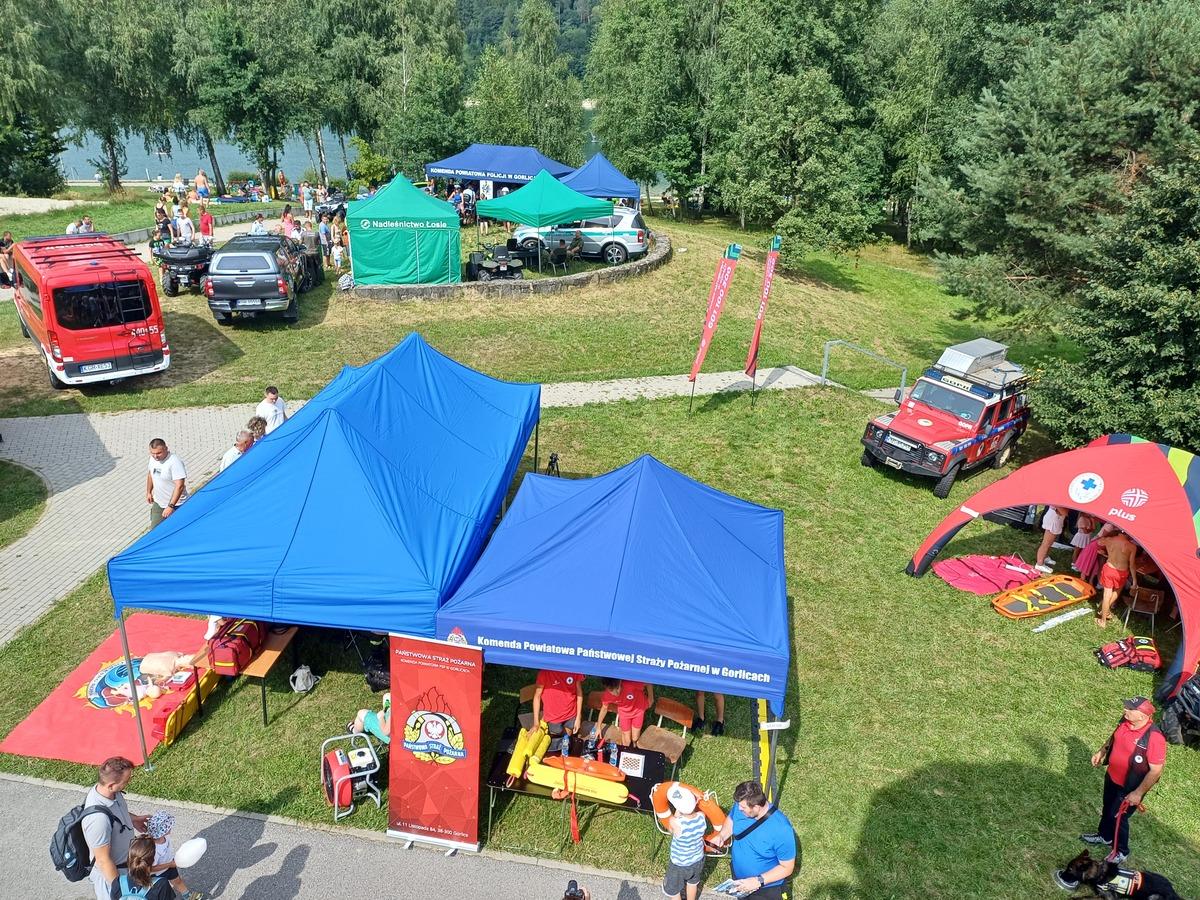 Prezentacje sprzętu, pokazy pracy służb mundurowych uczestniczących w pikniku, zabawy i konkursy oraz wiele innych atrakcji czekało na wszystkich, którzy odwiedzili 20 lipca br. Zalew Klimkówka. Swoje stoiska zaprezentowali policjanci z KPP w Gorlicach, strażacy z KP PSP w Gorlicach, ratownicy gorlickiego WOPR, ratownicy grupy krynickiej GOPR, druhowie z OSP Ropa. Ponadto zakres zadań przez siebie realizowanych przedstawili pracownicy Stacji Sanitarno-Epidemiologicznej w Gorlicach oraz przedstawiciele Lasów Państwowych leśnicy z nadleśnictwa Łosie.