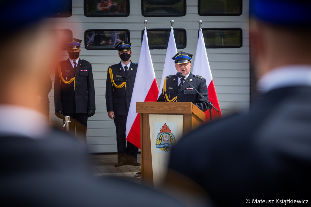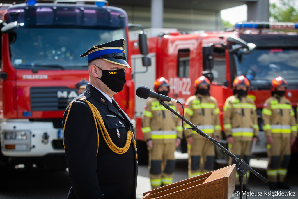 Następnie bryg. Krzysztof Gładysz przywitał zaproszonych gości i podsumował działalność Komendy Powiatowej PSP w Gorlicach i jednostek Ochotniczych Straży Pożarnych dziękując za profesjonalizm, gotowość operacyjną i trud włożony w działania ratowniczo-gaśnicze oraz walkę z pandemią koronawirusa. Słowa podziękowania skierował także do parlamentarzystów, samorządowców przedstawicieli instytucji i osób wspierających naszą formację ratowniczą.