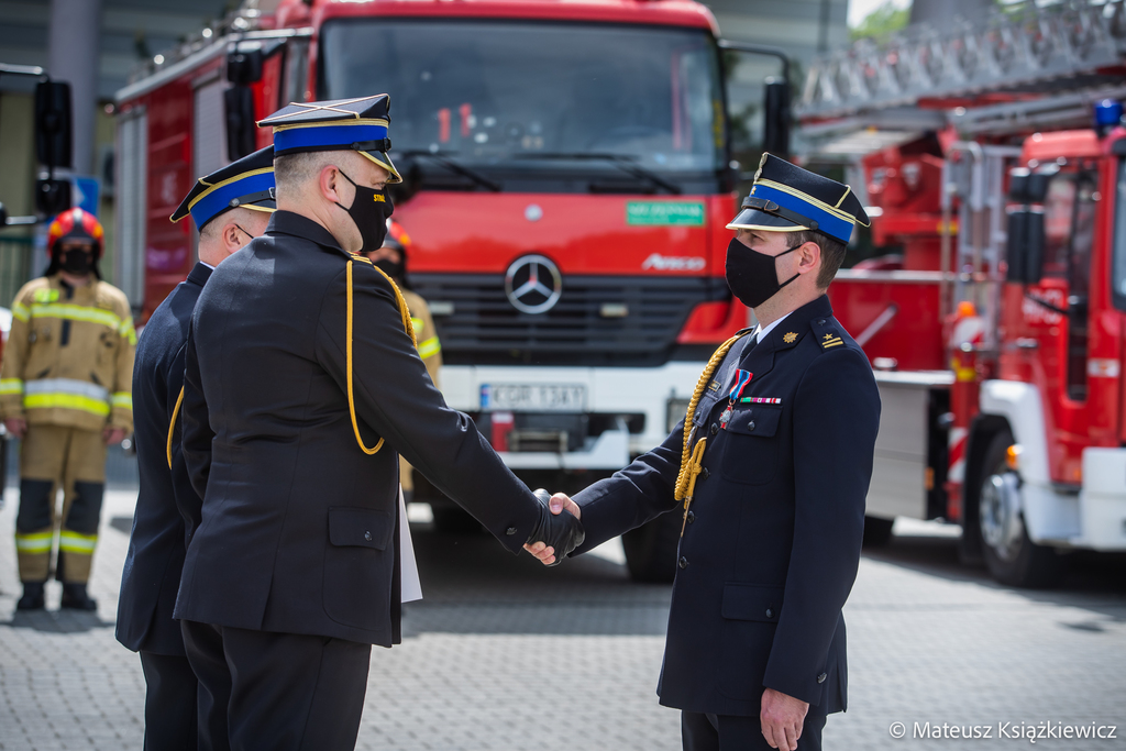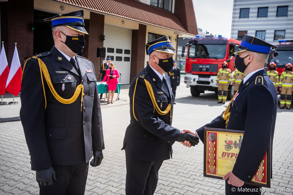 W czasie okolicznościowego apelu wręczone zostały wyróżnienia i odznaczenia resortowe oraz awanse zawodowe na wyższe stopnie służbowe. Odznaczenia państwowe, resortowe i związkowe otrzymało 35 strażaków i pracowników cywilnych natomiast awanse na wyższe stopnie służbowe otrzymało 20 funkcjonariuszy. Ponadto jeden ze strażaków został wyróżniony Dyplomem Komendanta Głównego PSP.