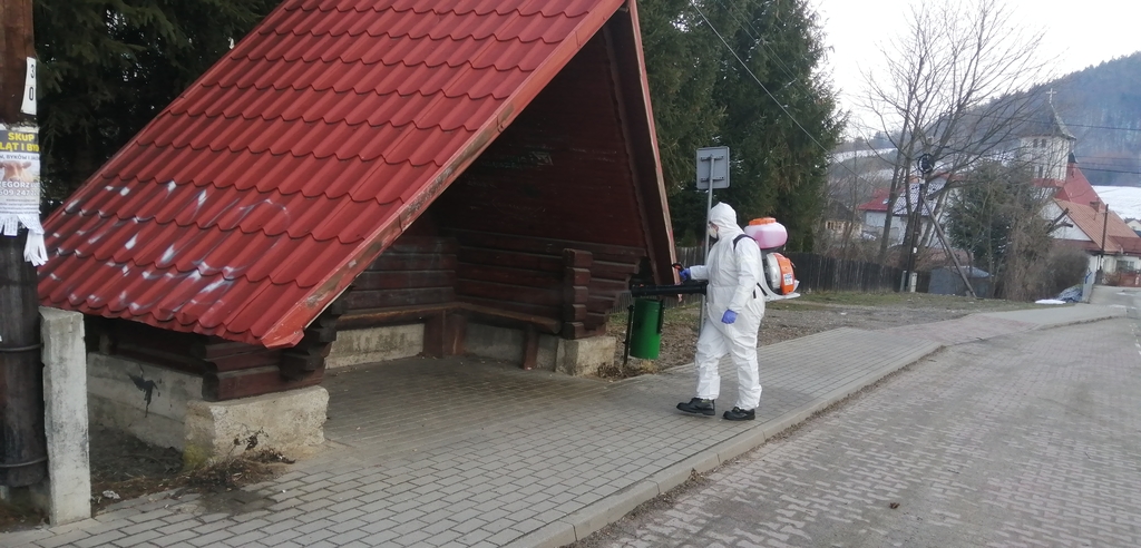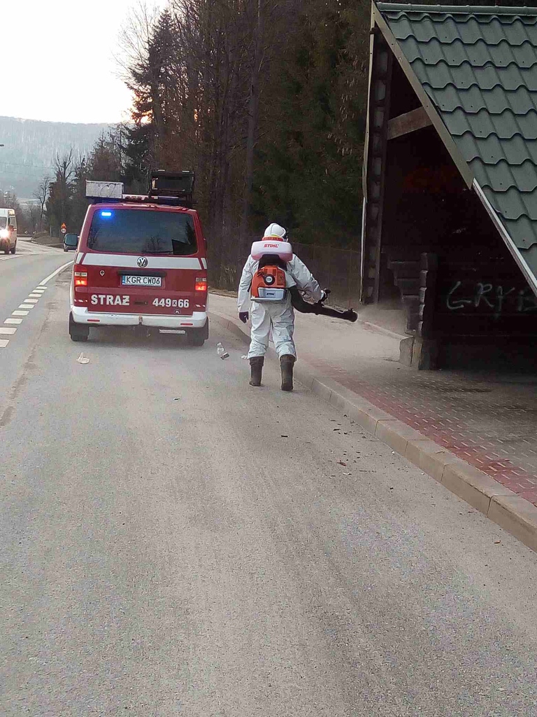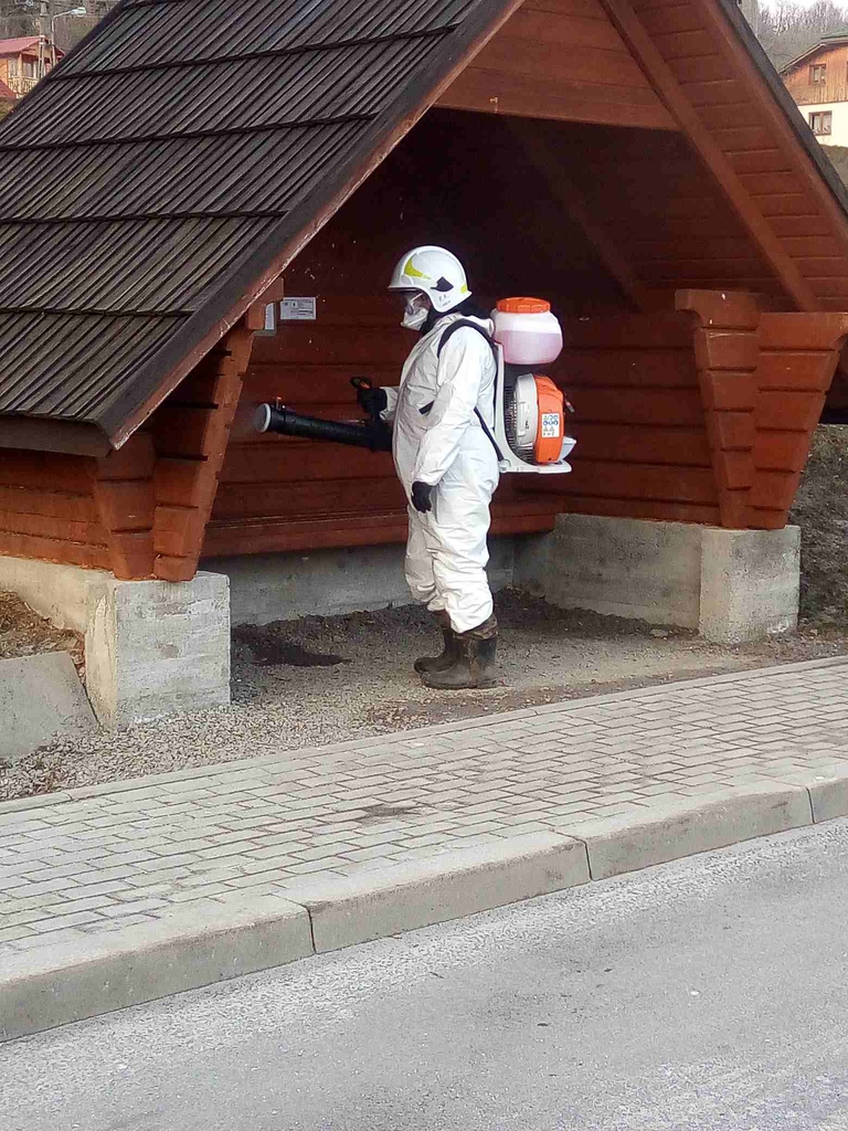 W celu zapobiegania, przeciwdziałania i zwalczania skutków rozprzestrzeniania się koronawirusa SARS-CoV-2 druhowie z Ochotniczych Straży Pożarnych z terenu powiatu gorlickiego w dniach od 6 do 7 marca 2021 roku realizowali zadania związane z dekontaminacją przestrzeni publicznej. Czynności te polegały na odkażeniu środkiem dezynfekcyjnym przy wykorzystaniu przenośnych opryskiwaczy spalinowych miejsc przestrzeni publicznej m.in. przystanków autobusowych, placów zabaw itp. Wyżej wymienione działania były realizowane na terenie gmin Gorlice, Łużna i Ropa.