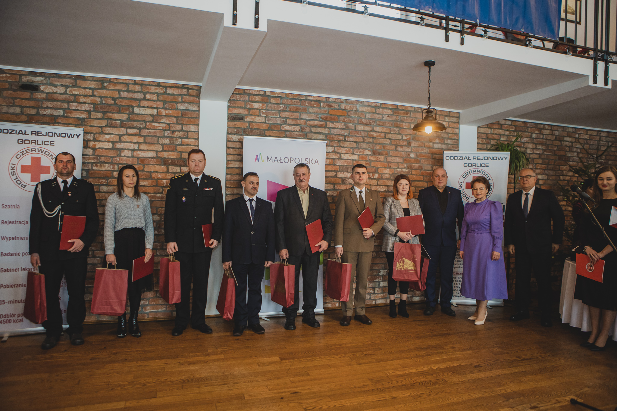 Uroczystość była okazją do odznaczenia Zasłużonych Honorowych Dawców Krwi i wyróżnienia najaktywniejszych krwiodawców oraz osób wspierających ruch czerwonokrzyski i Polski Czerwony Krzyż. Wśród nich znaleźli się strażacy z Klubu HDK PCK przy Komendzie Powiatowej PSP w Gorlicach.
