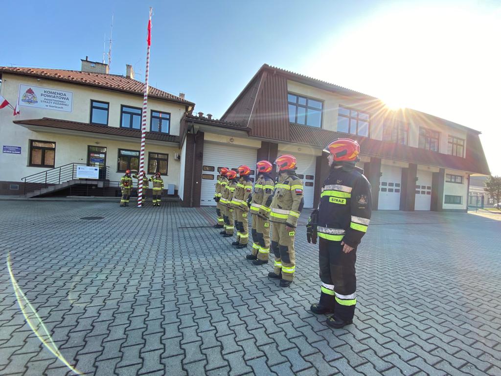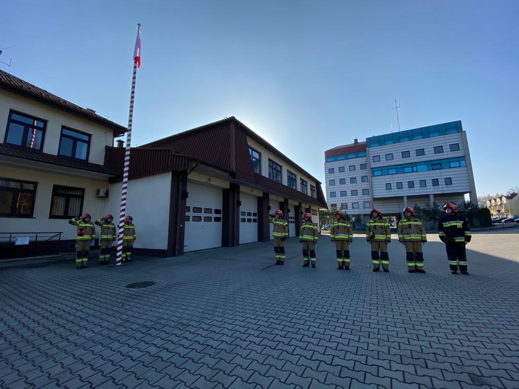 Uroczyste podniesienie Flagi Rzeczpospolitej Polskiej w Komendzie Powiatowej Państwowej Straży Pożarnej w Gorlicach z okazji Święta Niepodległości