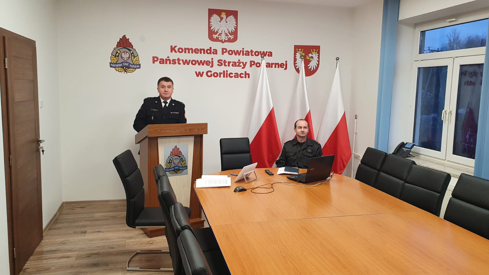 15 lutego 2022 roku odbyły się dwie wideokonferencje kadry kierowniczej Komendy Powiatowej PSP w Gorlicach pod przewodnictwem bryg. Krzysztofa Gładysza komendanta powiatowego PSP w Gorlicach, z przedstawicielami samorządu terytorialnego oraz przedstawicielami Ochotniczych Straży Pożarnych z terenu powiatu gorlickiego.