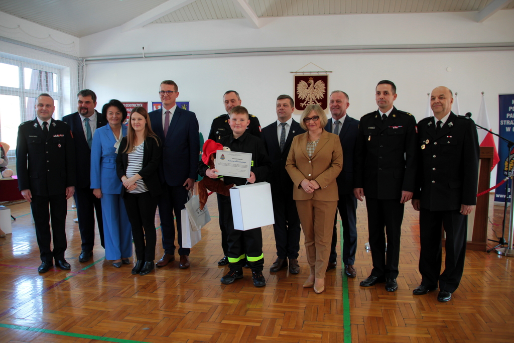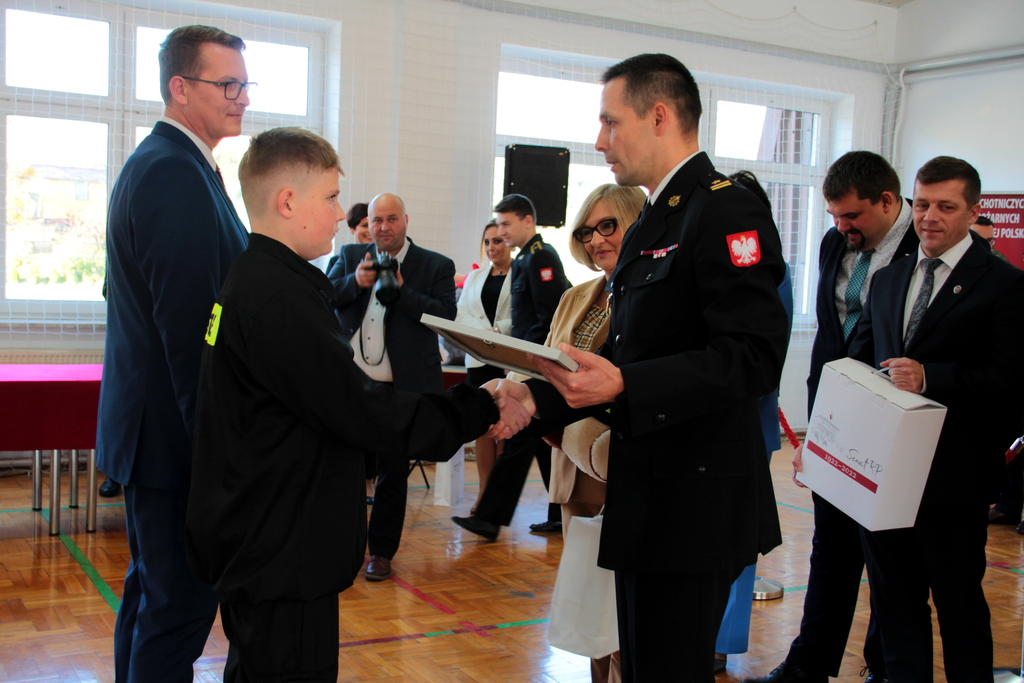 Kolejny punktem uroczystości było wręczenie dyplomów uznania i upominków dla laureatów szczebla krajowego w Ogólnopolskim Turnieju Wiedzy Pożarniczej „Młodzież Zapobiega Pożarom” oraz Ogólnopolskim Strażackim Konkursie Plastycznym. Komendant Powiatowy PSP w Gorlicach mł. bryg. Waldemar Krok wyróżnił: