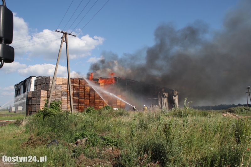 W związku z tą informacją oraz pierwszymi informacjami od dojeżdżających zastępów, dyżurny zadysponował kolejne zastępy z sąsiednich gmin oraz z powiatu leszczyńskiego. Usytuowanie palet oraz silnie wiejący wiatr spowodował bardzo szybki rozwój pożaru i już po kilkunastu minutach cała hala została objęta pożarem. O zdarzeniu poinformowano oficera operacyjnego, dowódcę JRG oraz Komendanta Powiatowego. W trakcie dojazdu były kolejne zastępy. Po przybyciu na miejsce zdarzenia dowódcy JRG, teren akcji podzielono na dwa odcinki bojowe i zorganizowano łączność radiową. Zaopatrzenie wodne realizowano z hydrantów, pobliskiego stawu oraz cystern wodnych, które także przyjechały na miejsce pożaru. Około godziny 17:15 pożar został zlokalizowany. Dogaszanie pogorzeliska trwało do południowych godzin dnia następnego. Spaleniu uległa hala magazynowa o wymiarach 65m x 27m x 13m oraz składowisko palet.