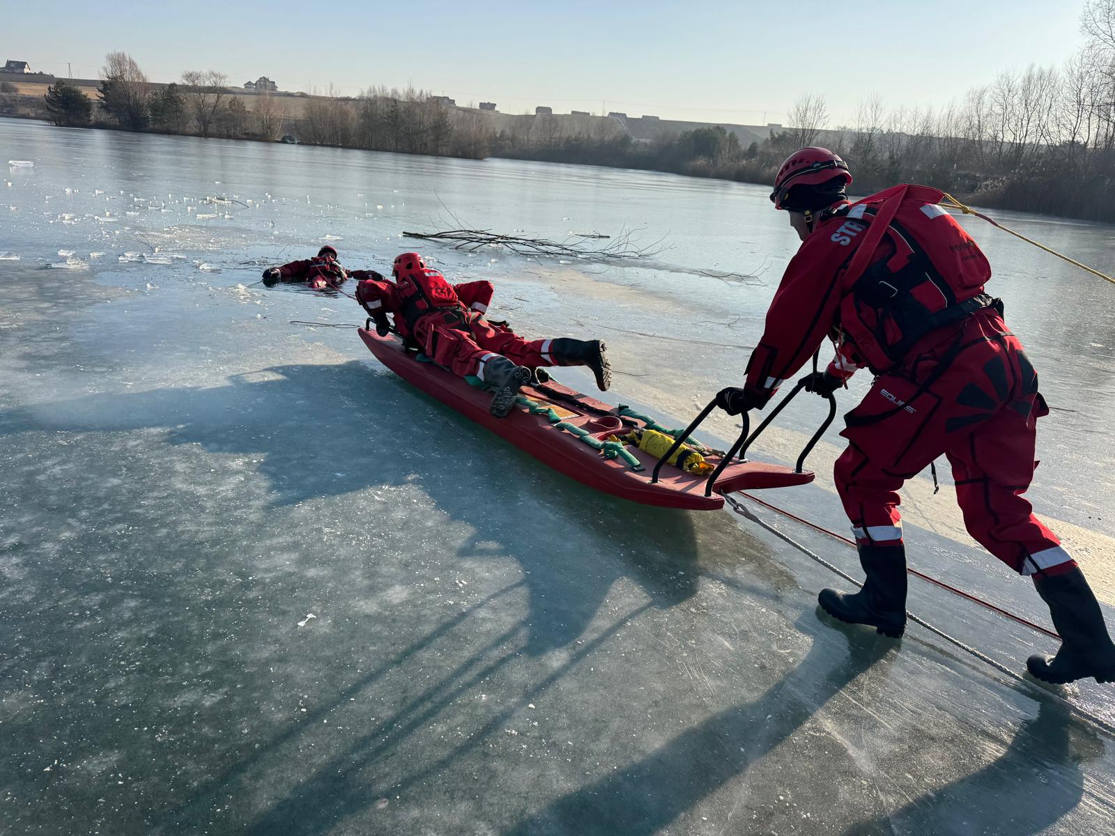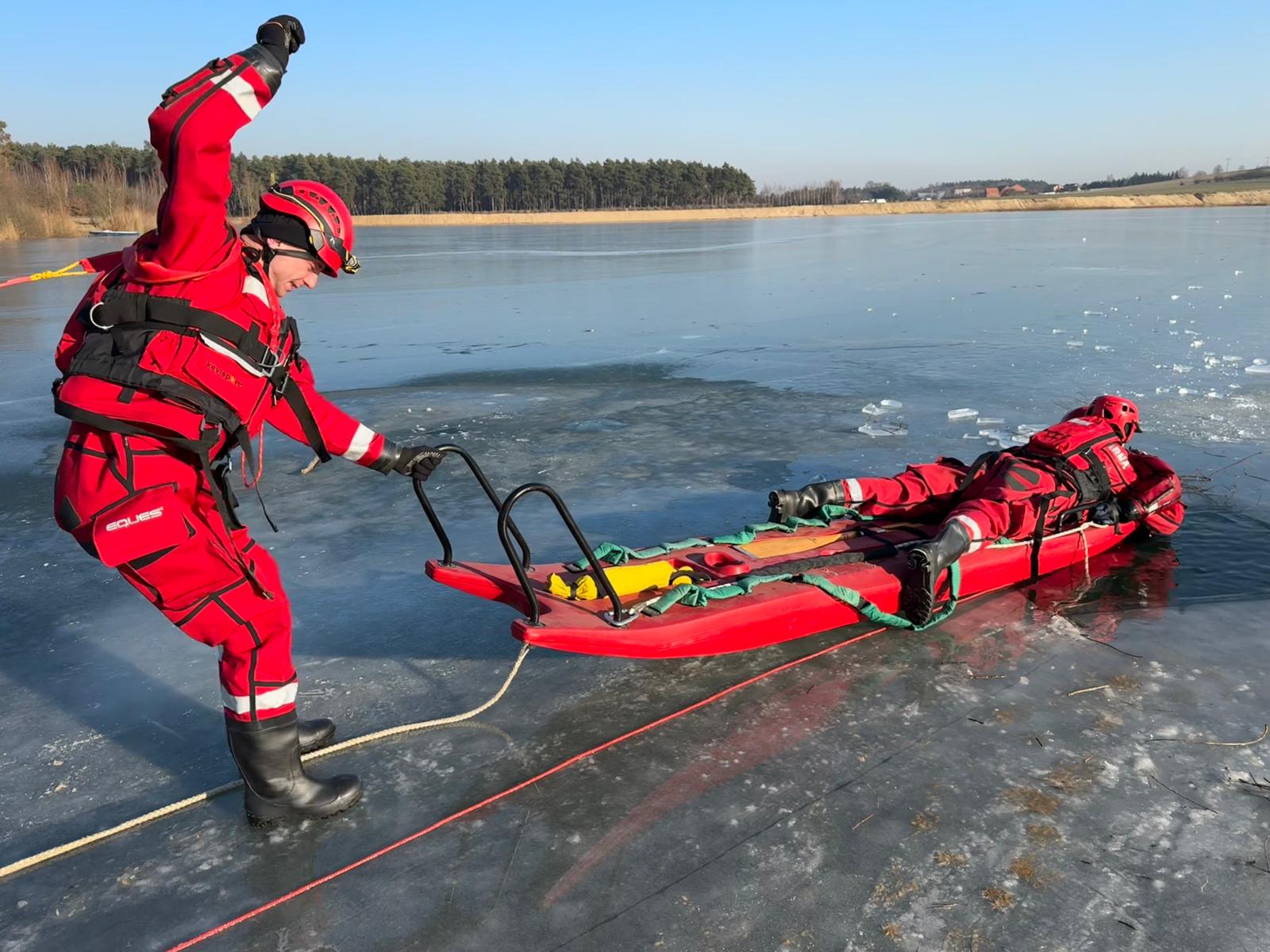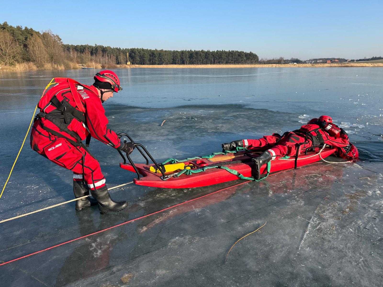 Ćwiczenia lodowe strażaków PSP z Gostynia w Smogorzewie