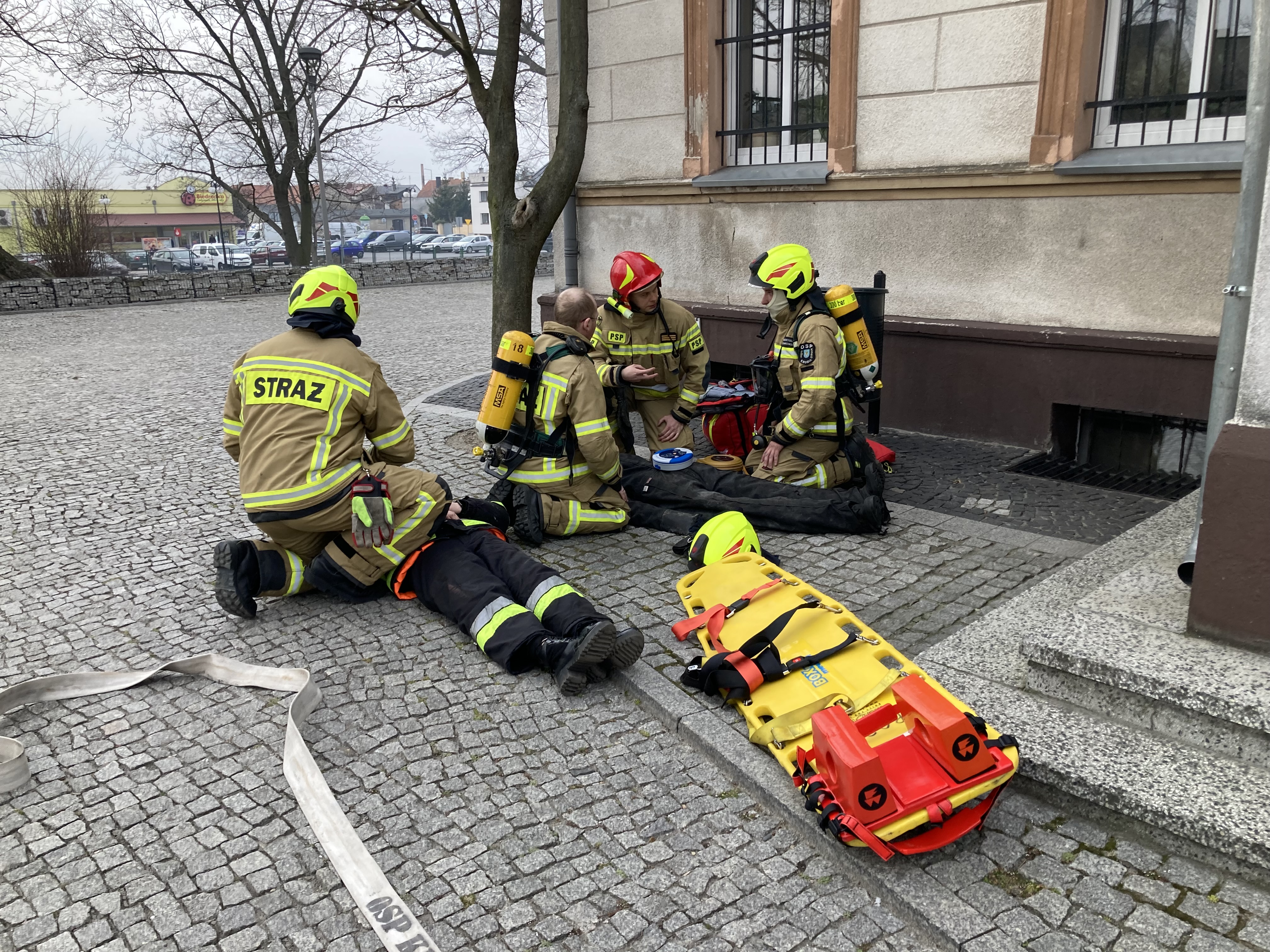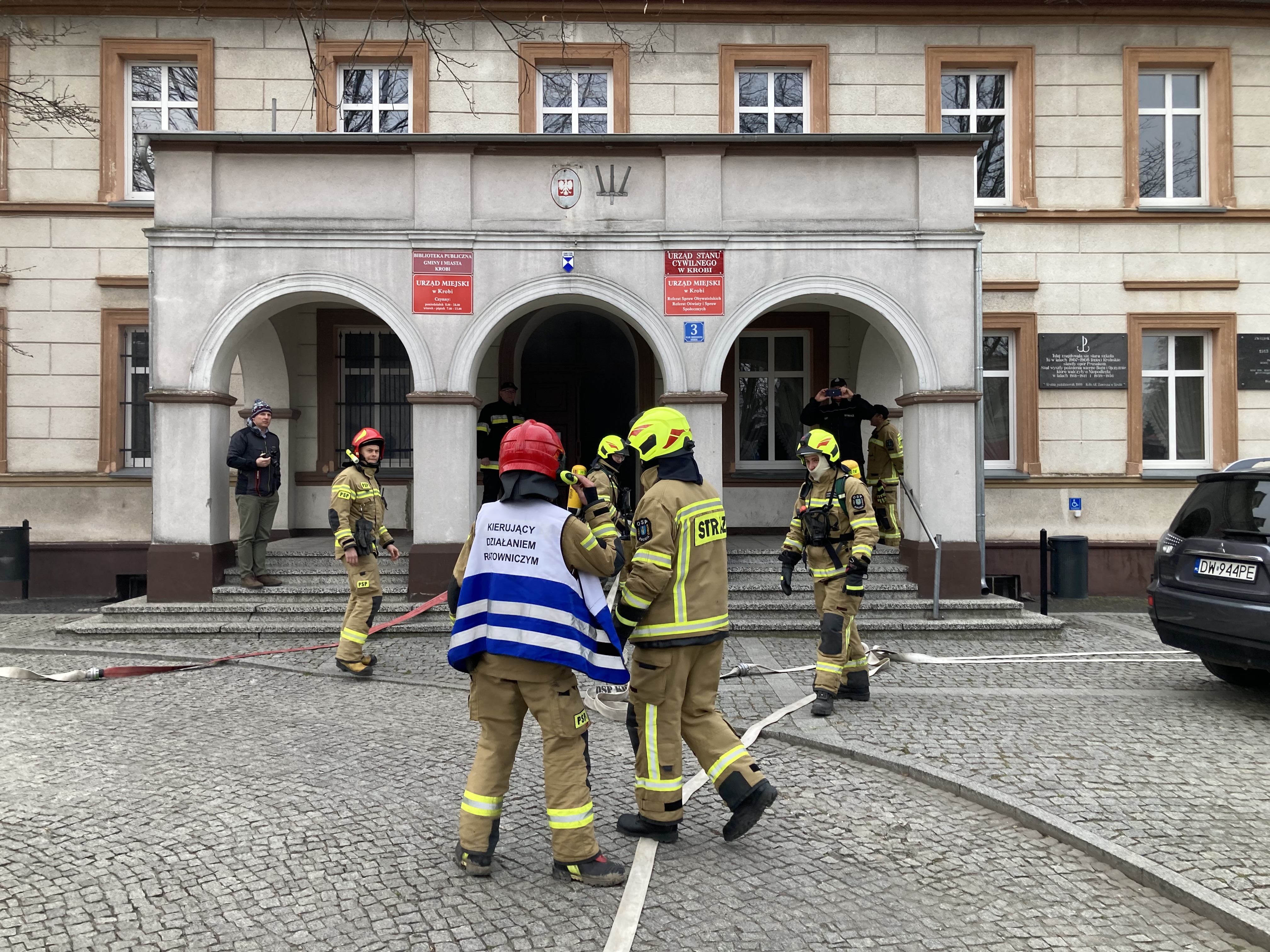 Ćwiczenia obserwowali: zastępca Komendanta Powiatowego oraz Burmistrz Krobi.