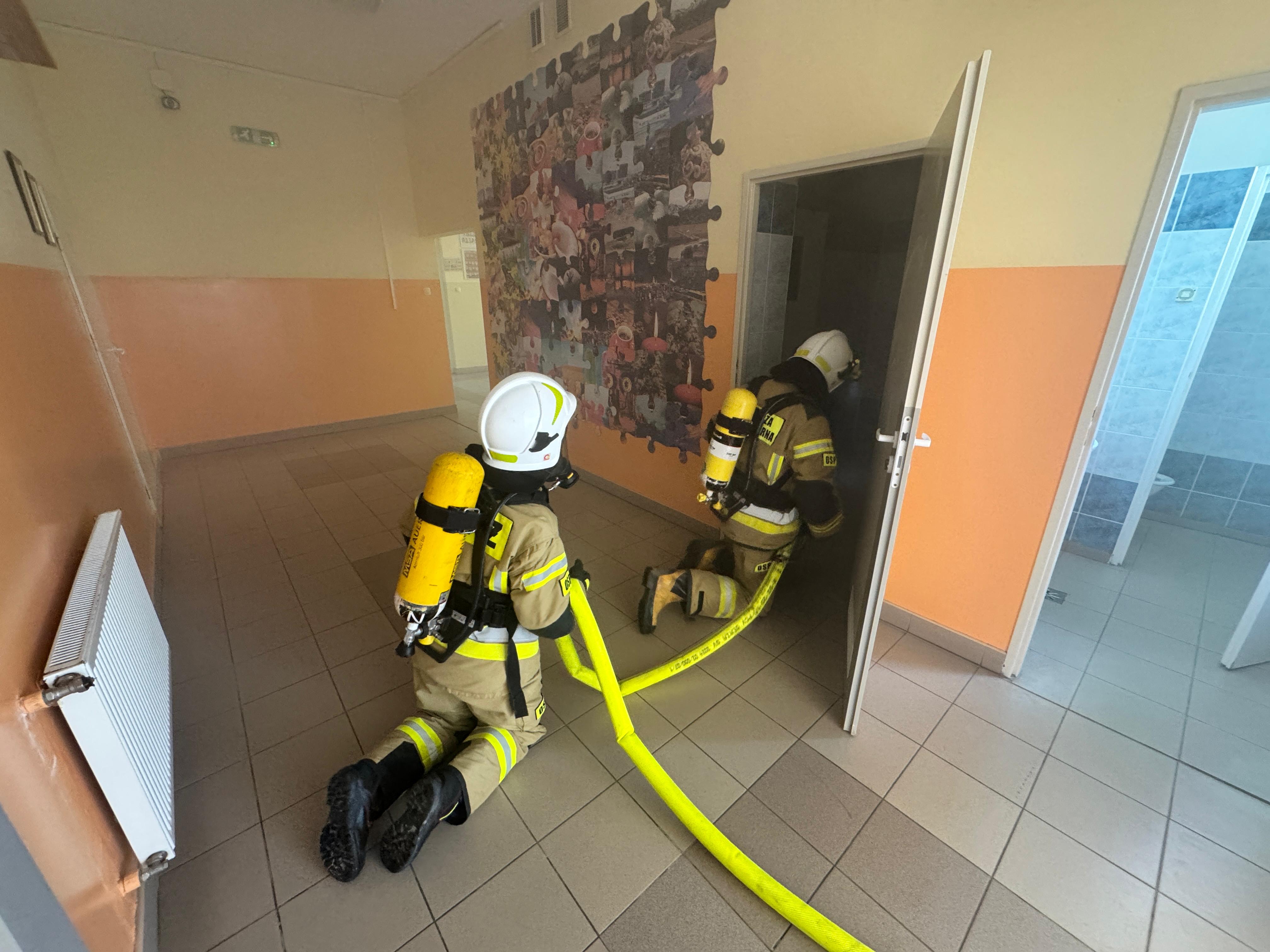Scenariusz zakładał rozwijający się pożar w budynku szkolnym, w którym przebywało ponad 150 osób. Większość z nich opuściła obiekt samodzielnie, jednak 10 osób wymagało pomocy – zostały one zlokalizowane i ewakuowane przez strażaków.