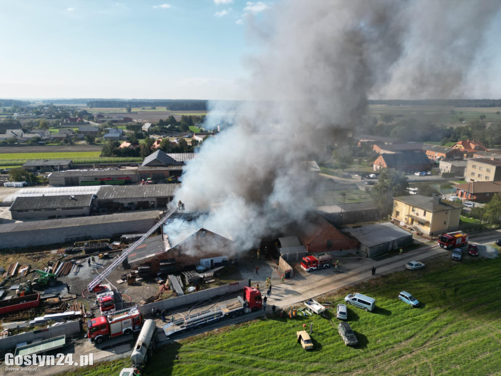 Duży pożar budynku produkcyjnego