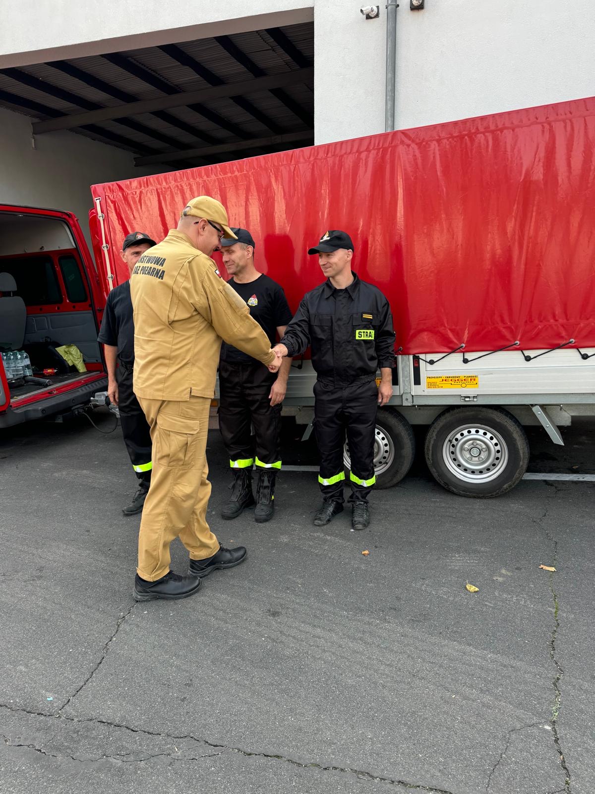 Komendant podziękował funkcjonariuszom za zaangażowanie i ofiarność w ratowaniu mienia oraz niesieniu pomocy ludziom zagrożonych powodzią.