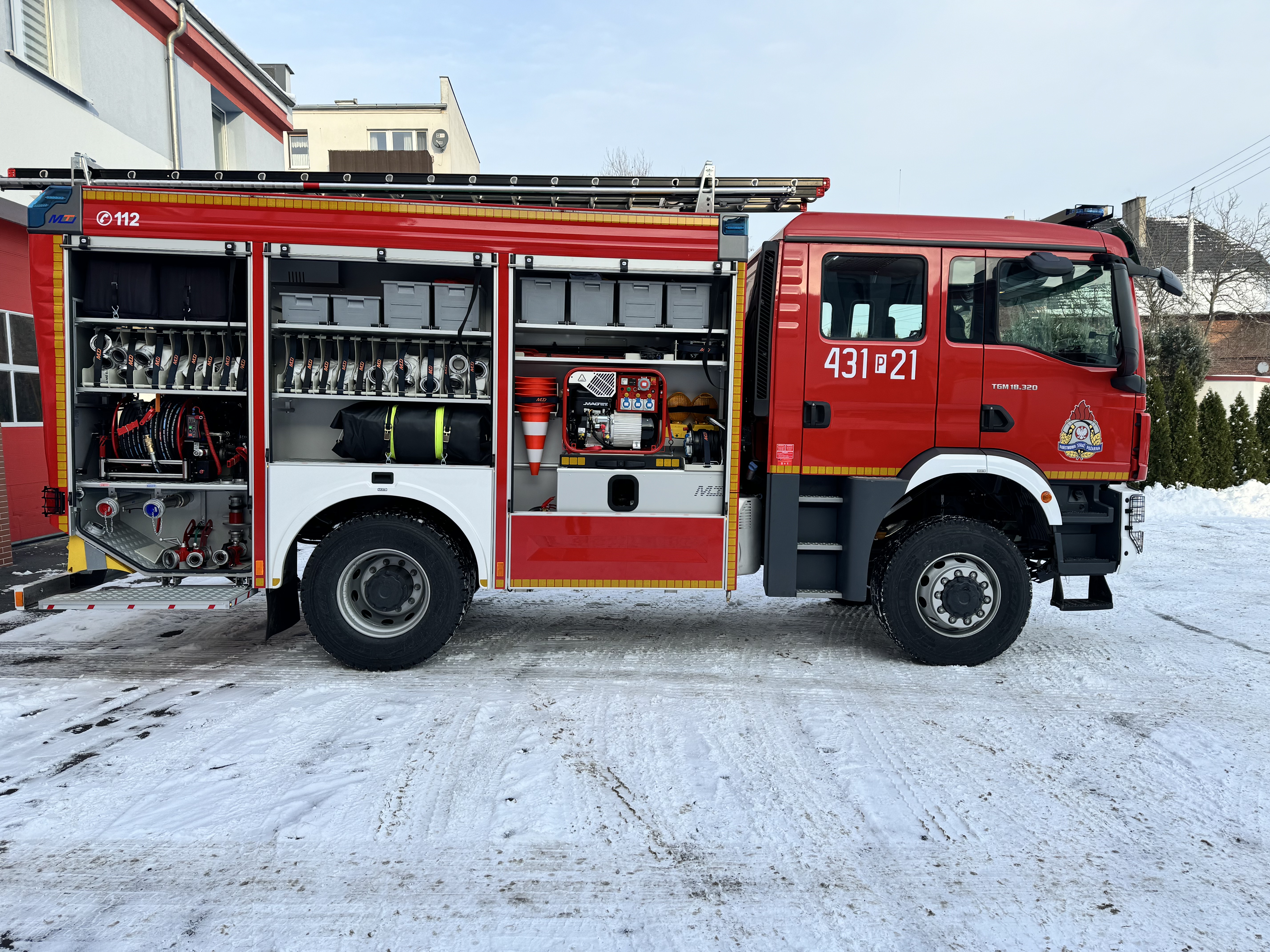 Nowy nabytek gostyńskich strażaków to średni samochód ratowniczo-gaśniczy ze zwiększonym potencjałem ratownictwa drogowego, zabudowany przez MOTO-TRUCK Sp. z o.o., na podwoziu MAN TGM 18.320 z napędem 4x4. Pojazd posiada silnik o mocy 320 kM, zbiornik na wodę o pojemności 3000 litrów, zbiornik na środek pianotwórczy mieszczący 325 litrów, a także dwuzakresową autopompę.