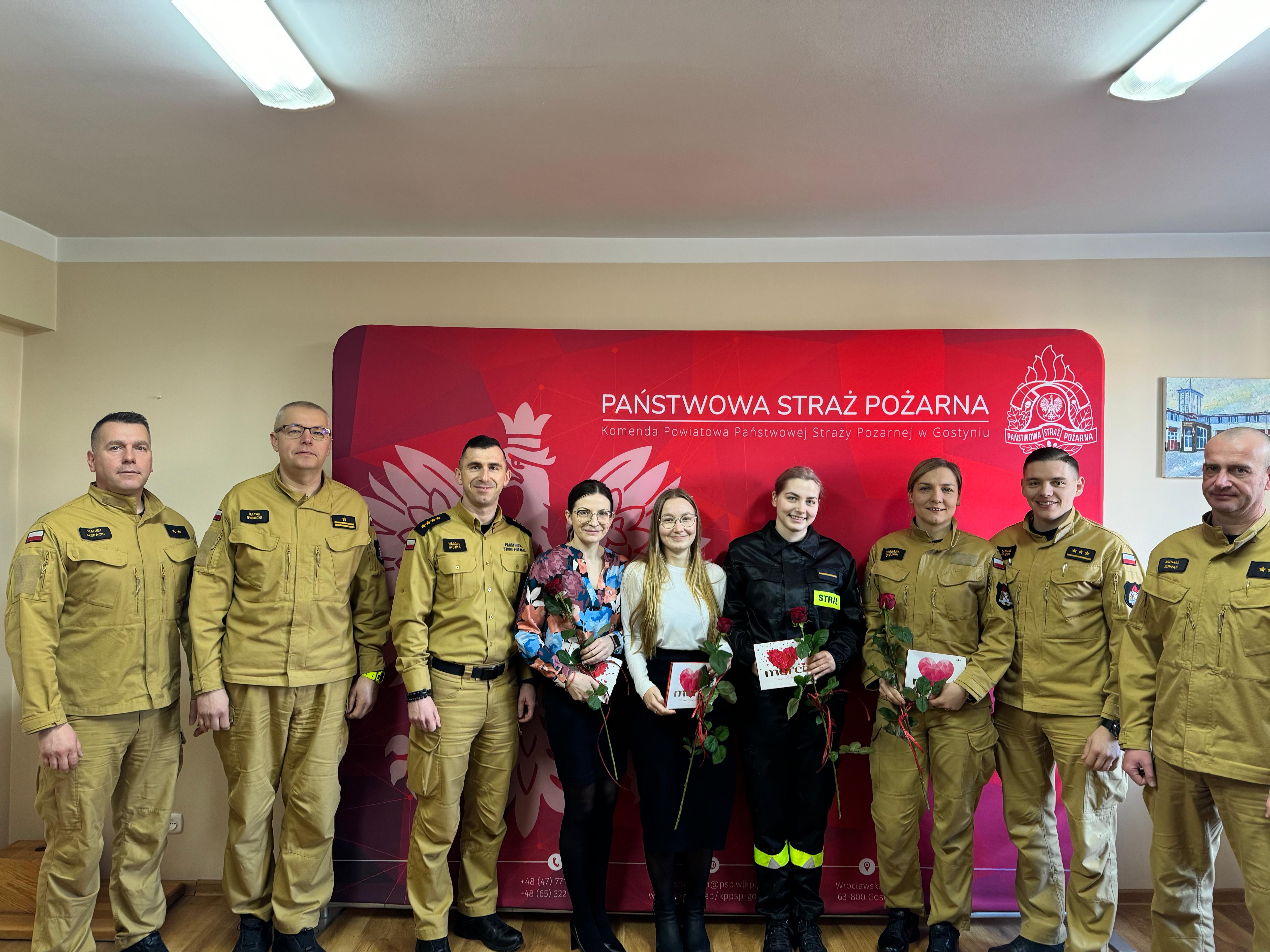 Z tej okazji w piątkowy poranek komendant Powiatowy PSP w Gostyniu st. kpt. Marcin Nyczka wraz z funkcjonariuszami złożył wszystkim funkcjonariuszkom oraz Paniom pracującym na stanowiskach cywilnych w gostyńskiej komendzie najszczersze życzenia.