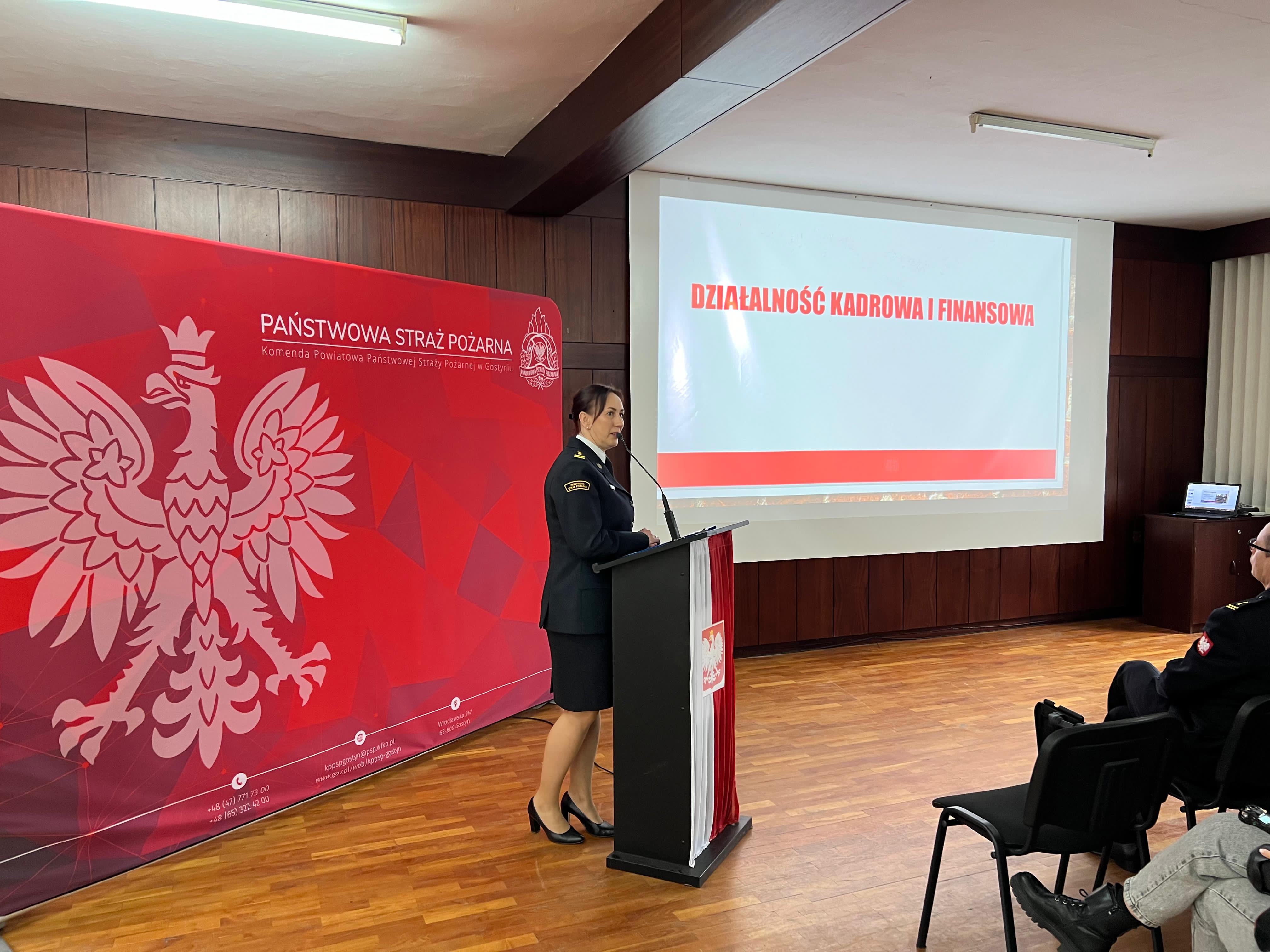 Po zakończonej prezentacji głos zabrała bryg. Lucyna Rudzińska – przedstawiciel Wielkopolskiego Komendanta Wojewódzkiego PSP w Poznaniu, która w słowach uznania podziękowała wszystkim strażakom oraz pracownikom cywilnym za całoroczną służbę i pracę. Dodatkowo pokreśliła, jak ważnym aspektem świadomości społeczeństwa o zagrożeniach pożarowych jest edukacja dzieci od najmłodszych lat.