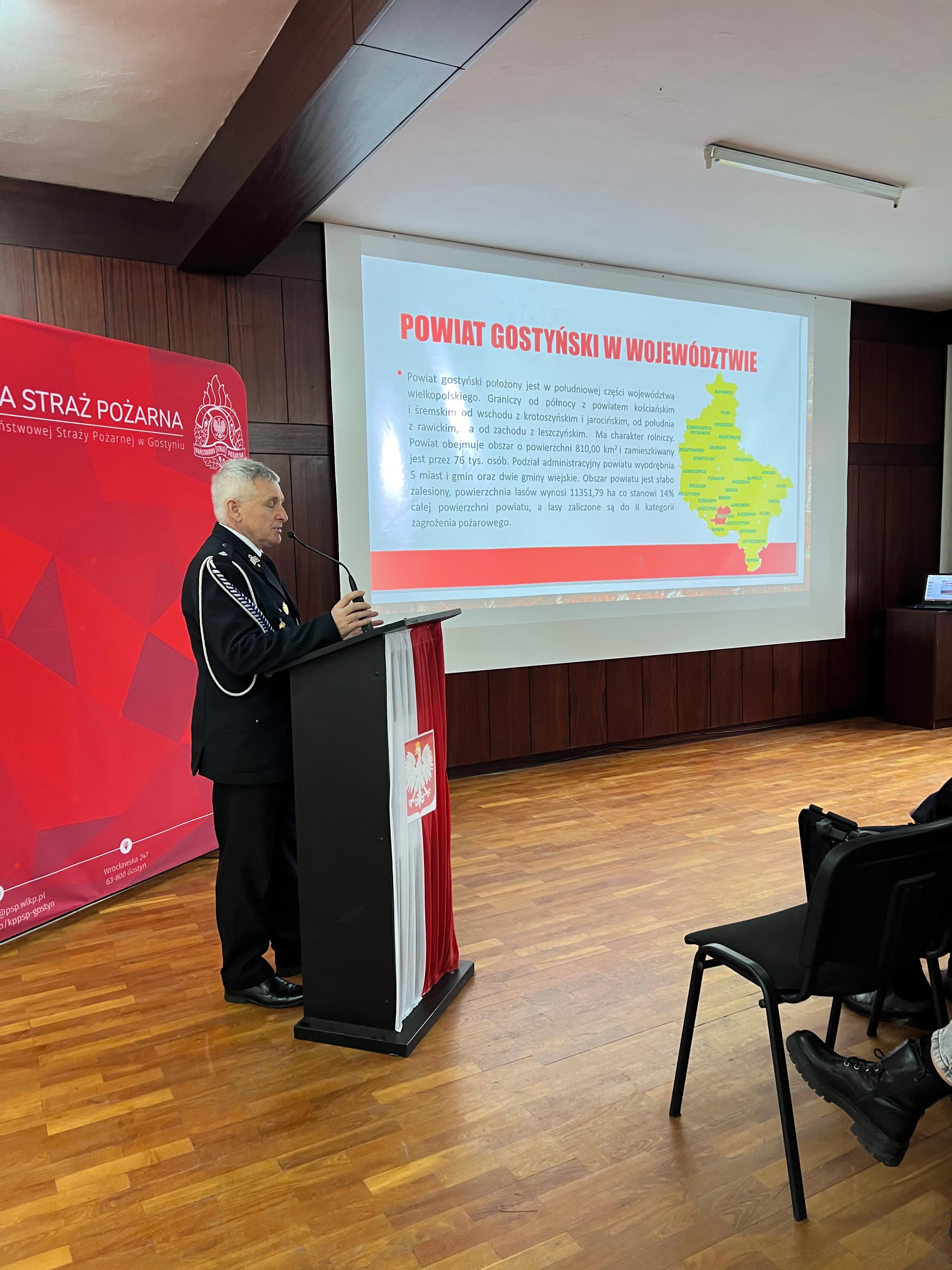 W trakcie narady Komendant Powiatowy st. kpt. Marcin Nyczka przedstawił w formie prezentacji multimedialnej informacje podsumowujące działalność gostyński strażaków w 2023 r., wyznaczył główne kierunki działań oraz cele dla Gostyńskiej Komendy w 2024 r. Podziękował swojej załodze za zaangażowanie i realizację powierzonych zadań w minionym roku.