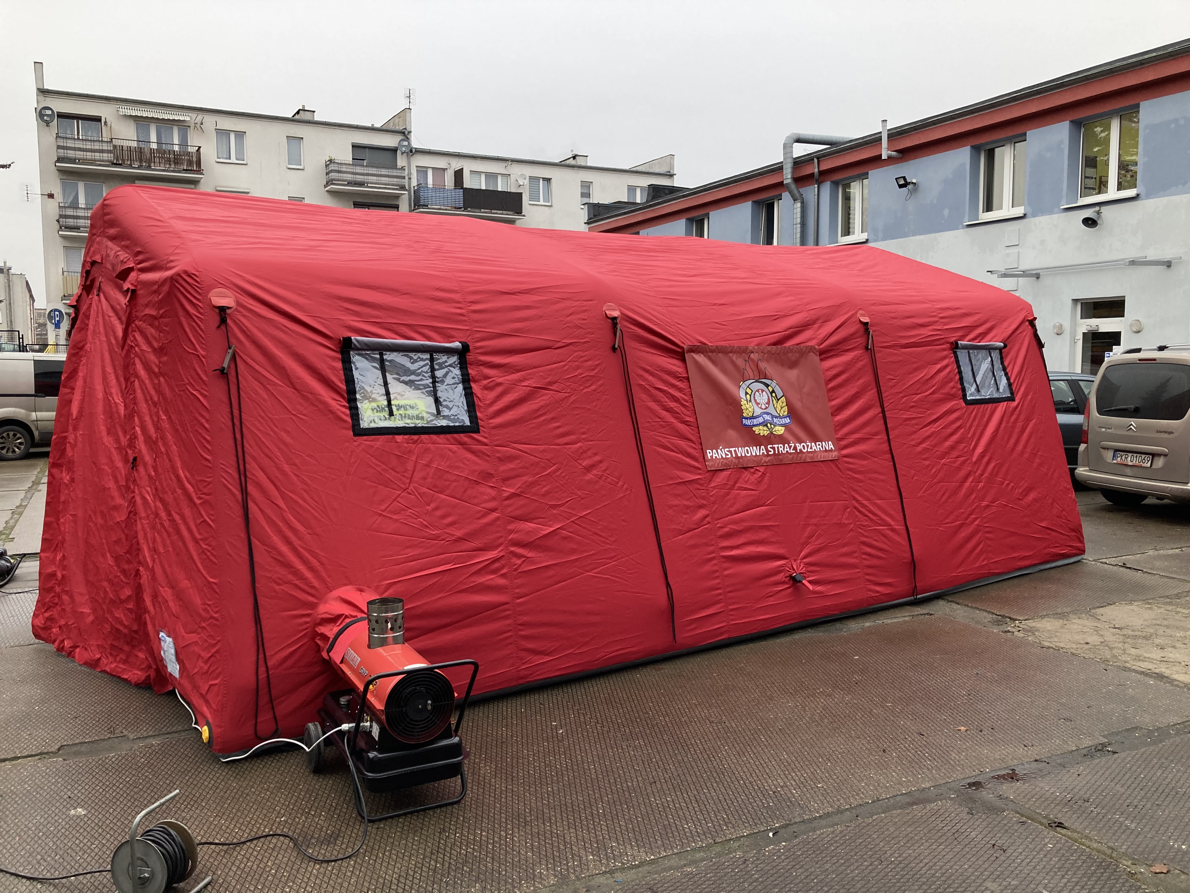- Namiot pneumatyczny wraz z wyposażeniem. Zakup sfinansowano ze środków budżetu państwa oraz Powiatu Gostyńskiego.