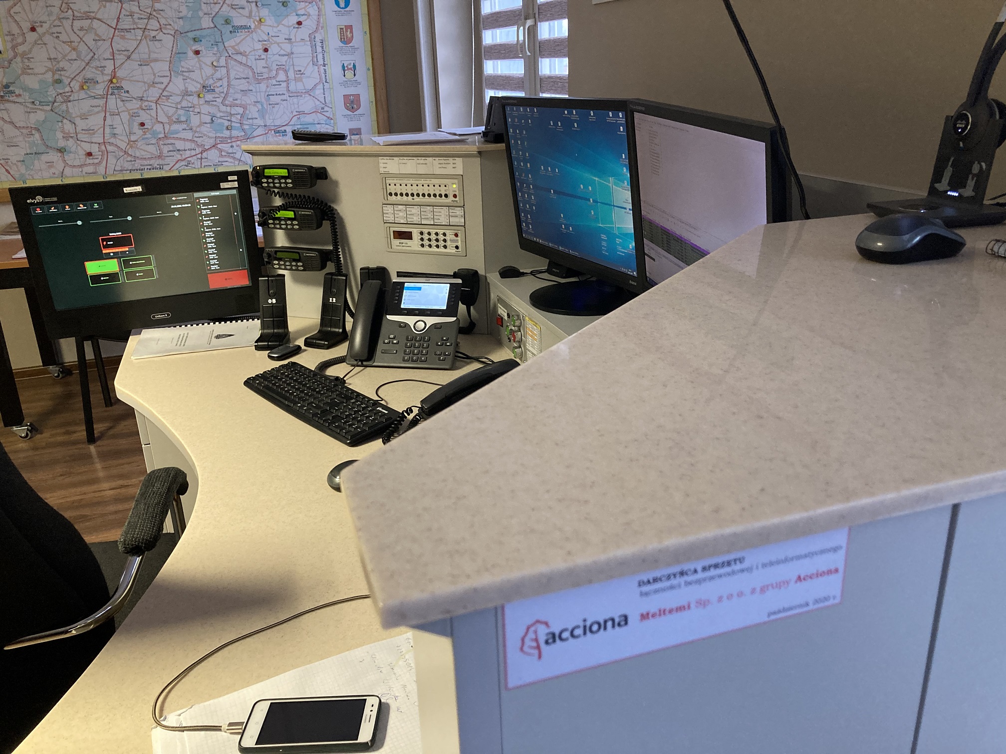 - Radiotelefony nasobne oraz telefony stacjonarne. Zakup sfinansowała firma Meltemi Sp. z z.o.o. członek grupy Acciona, która posiada fermy wiatrowej na terenie naszego powiatu.