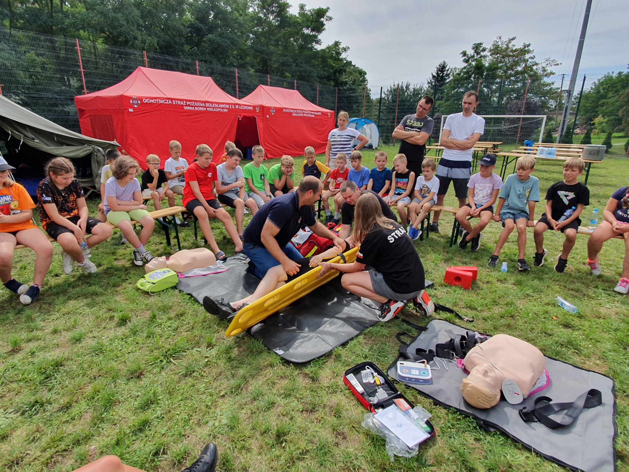 Podczas obozu, uczestnicy odbyli szkolenie z zakresu ratownictwa medycznego, zapoznali się ze sprzętem gaśniczym oraz brali udział w grach i zabawach. Podczas zorganizowanej wycieczki udali się także na gostyński basen.