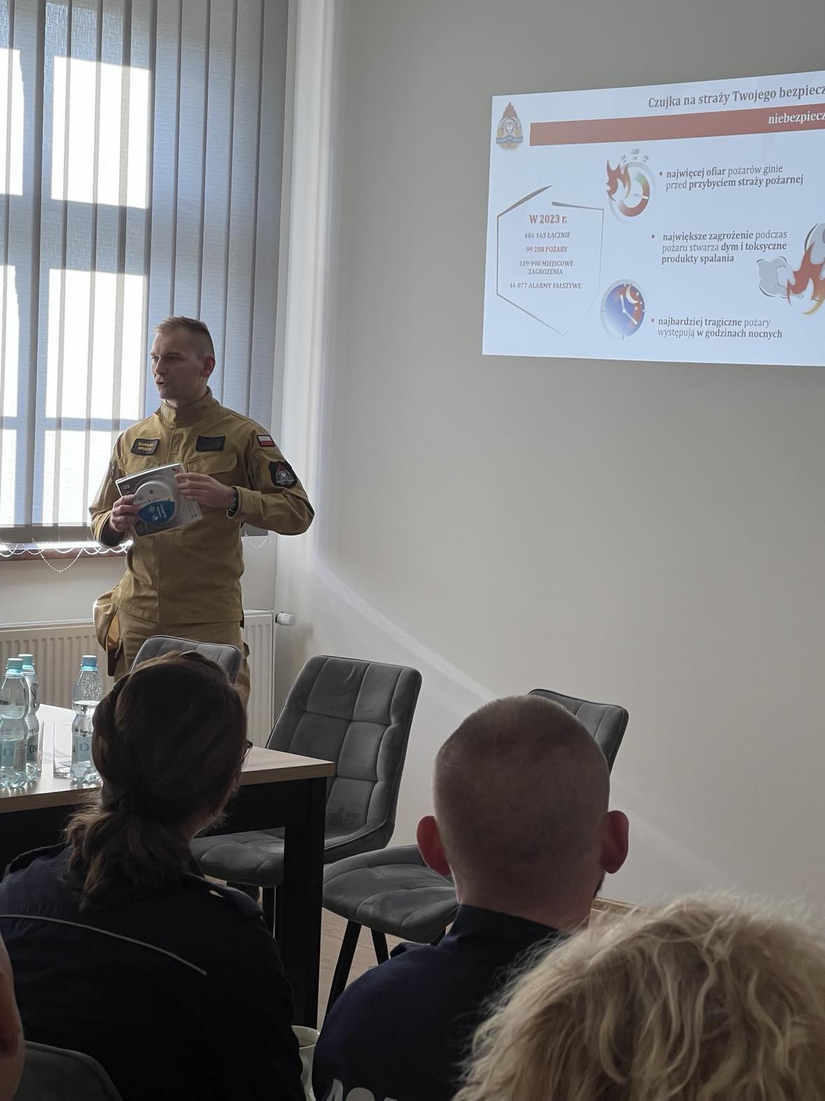 Prelekcję na temat szeroko rozumianych zasad bezpieczeństwa, zasad powiadamiania służb ratunkowych, zagrożeń związanych z pożarami oraz z tlenkiem węgla, prowadził str. Dariusz Hirsch.