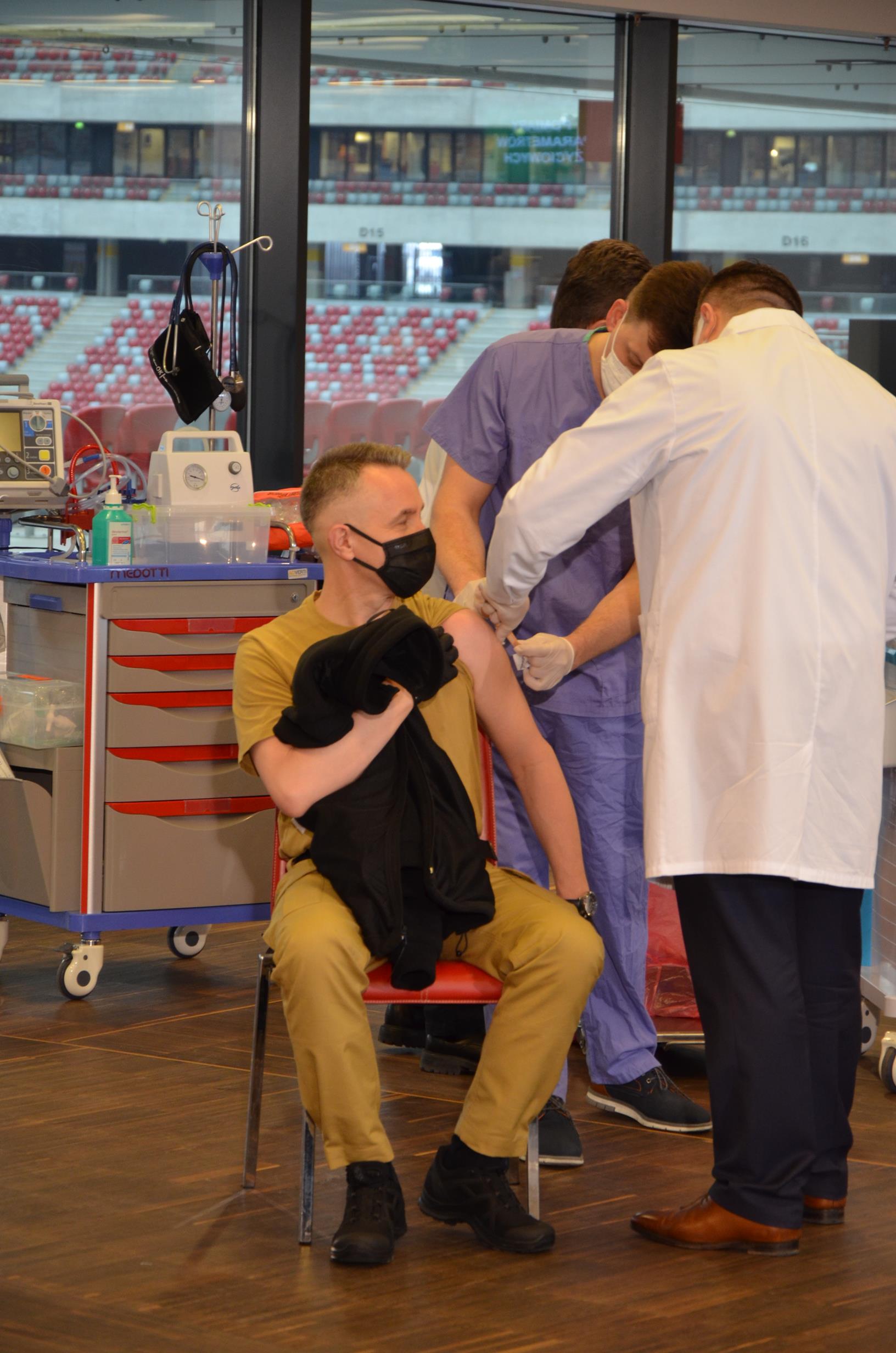 24 marca 2021 r. o godzinie 14.00 w szpitalu tymczasowym na PGE Narodowym rozpoczął się proces szczepień przeciw COVID-19 dla grupy 1C „służby mundurowe".