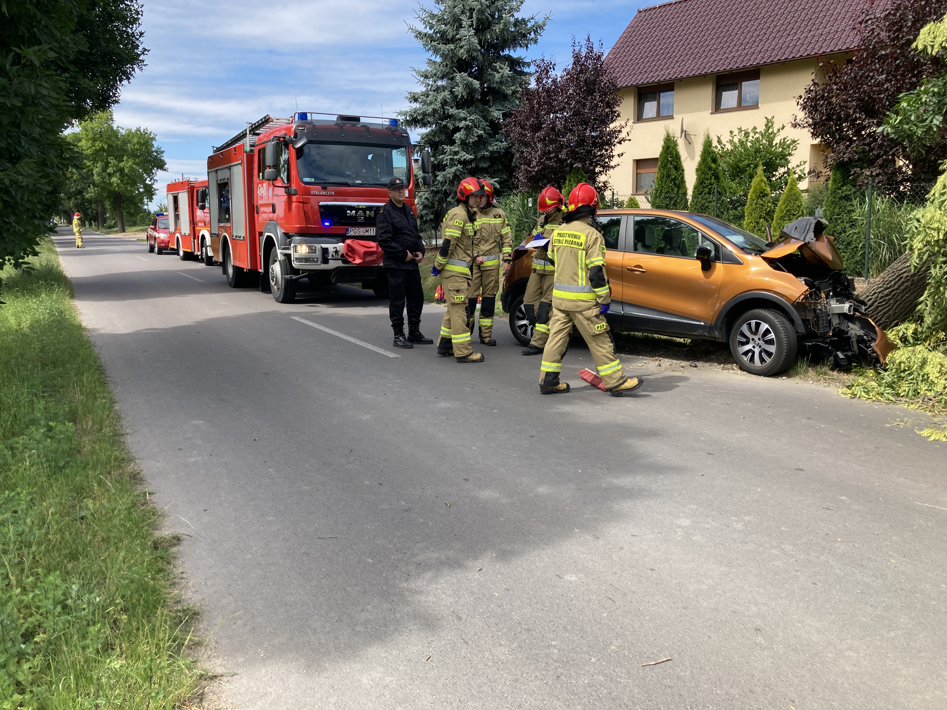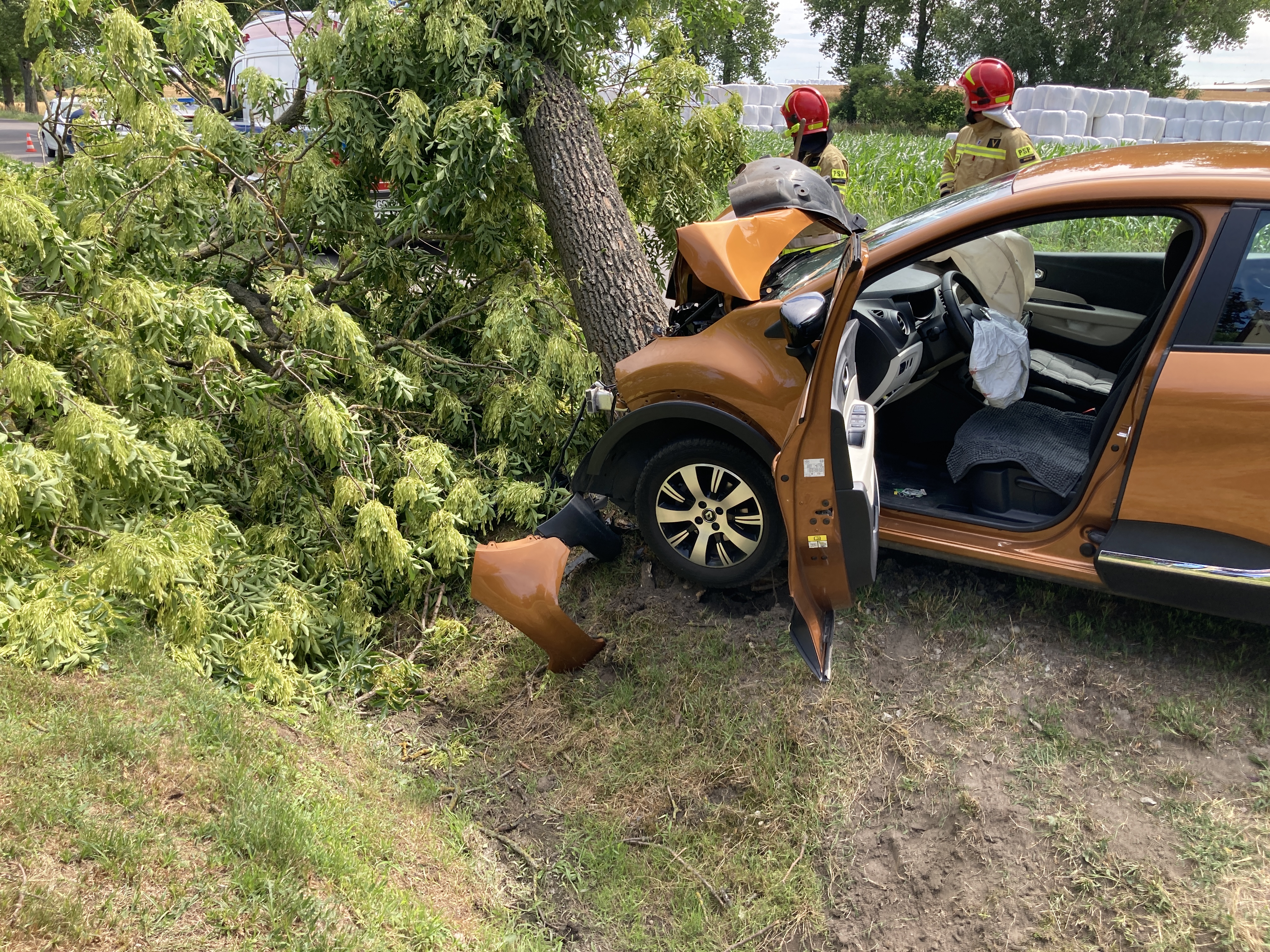 Do groźnie wyglądającego wypadku doszło w miejscowości Brzezie. 13 lipca 2022 roku do Komendy Powiatowej Państwowej Straży Pożarnej w Gostyniu wpłynęła informacja o wypadku samochodu osobowego, który uderzył w drzewo. Do zdarzenia dyżurny SKKP zadysponował dwa zastępy JRG Gostyń. Na miejsce wypadku udał się także dowódca JRG wraz z zastępcą. Po dojeździe na miejsce zdarzenia, strażacy udzielili kwalifikowanej pierwszej pomocy osobie poszkodowanej. Osoba była przytomna, z niewielkimi obrażeniami. Po przybyciu Zespołu Ratownictwa Medycznego, strażacy przekazali poszkodowanego, który został zabrany do szpitala na dalsze badania. Następnie strażacy usunęli drzewo, aby nie stwarzało zagrożenia.