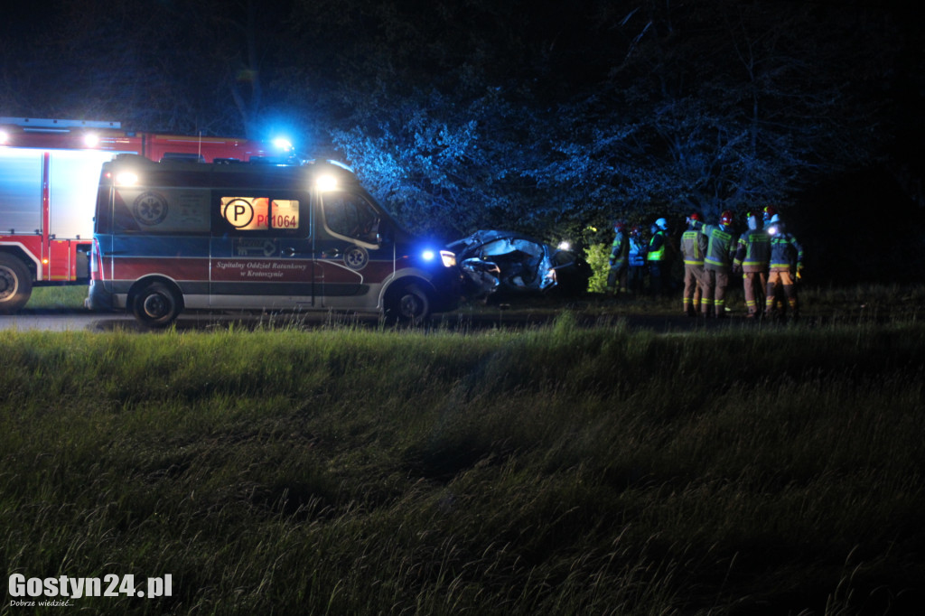 06 maja 2023 roku o godzinie 22:43 do Stanowiska Kierowania Komendanta Powiatowego Państwowej Straży Pożarnej w Gostyniu wpłynęło zgłoszenie o wypadku drogowym na trasie Pogorzela – Gumienice. Do działań ratowniczych zadysponowane zostały zastępy JRG oraz OSP. Po przybyciu na miejsce zdarzenia pierwszych zastępów ustalono, że w zdarzeniu brały udział dwa samochody osobowe którymi podróżowali tylko kierowcy.Obydwaj uczestnicy zdarzenia byli nieprzytomni, jeden z nich znajdował się poza pojazdem, natomiast drugi był zakleszczony w pojeździe. Strażacy przy pomocy narzędzi hydraulicznych wykonali dostęp do osoby nieprzytomnej, a następnie ewakuowali ją na zewnątrz pojazdu. 19-latek odzyskał przytomność. Równocześnie udzielano kwalifikowanej pierwszej pomocy osobie znajdującej się poza pojazdem. Poszkodowani zostali przekazani przybyłemu na miejsce zdarzenia Zespołowi Ratownictwa Medycznego. Niestety lekarz stwierdził zgon 18-latka. Na miejsce zdarzenia obecny był Komendant Powiatowy PSP w Gostyniu oraz Oficer Operacyjny. W celu ustalenia okoliczności oraz przyczyny wypadku na miejsce zdarzenia przybył prokurator oraz grupa dochodzeniowo-śledcza policji.