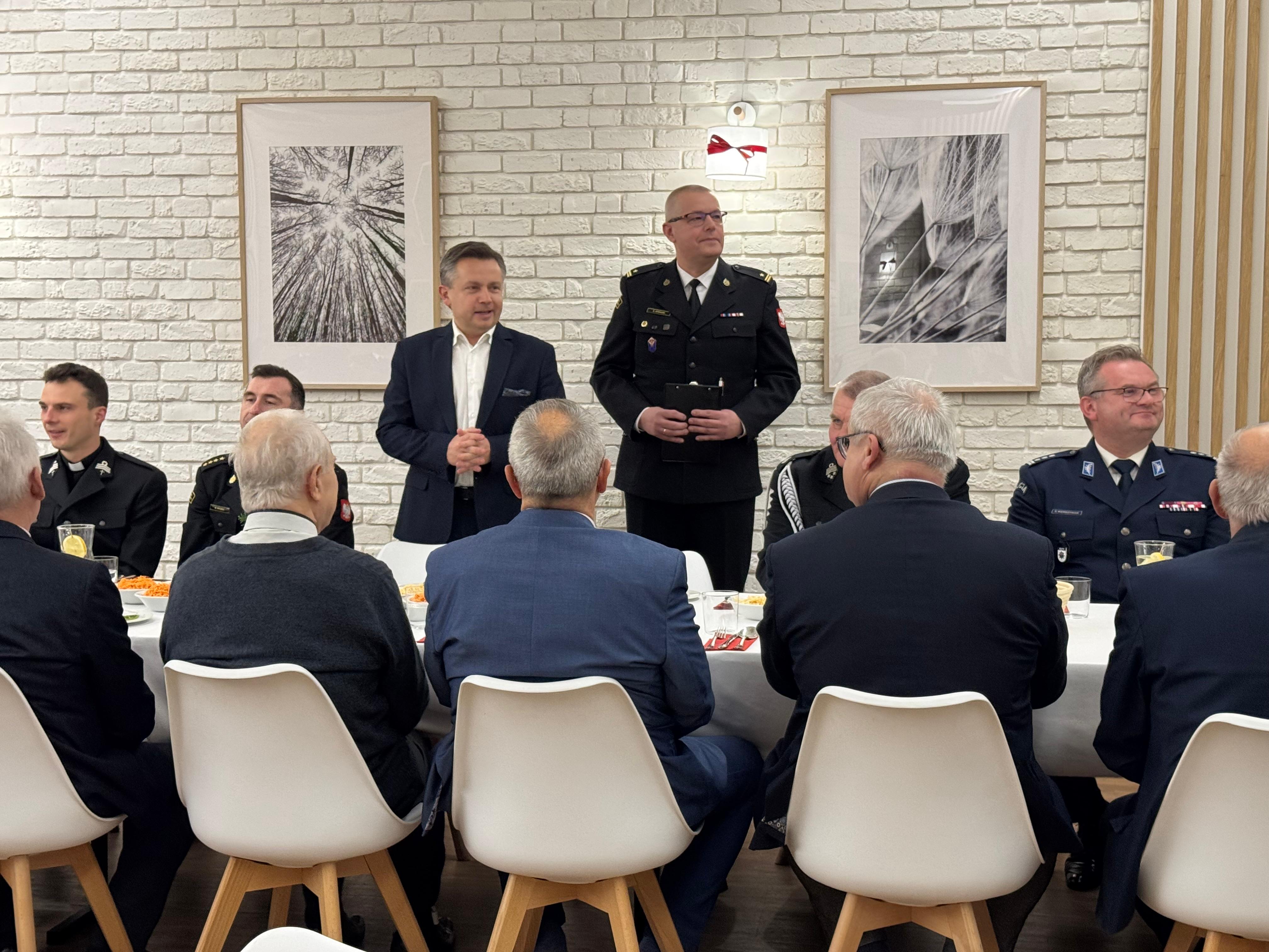 Spotkanie rozpoczęło się od złożenia życzeń przez komendanta oraz starostę gostyńskiego. Następnie wszyscy zgromadzeni wspólnie zaśpiewali kolędę i usiedli do stołu, gdzie czekały na nich pyszne potrawy.