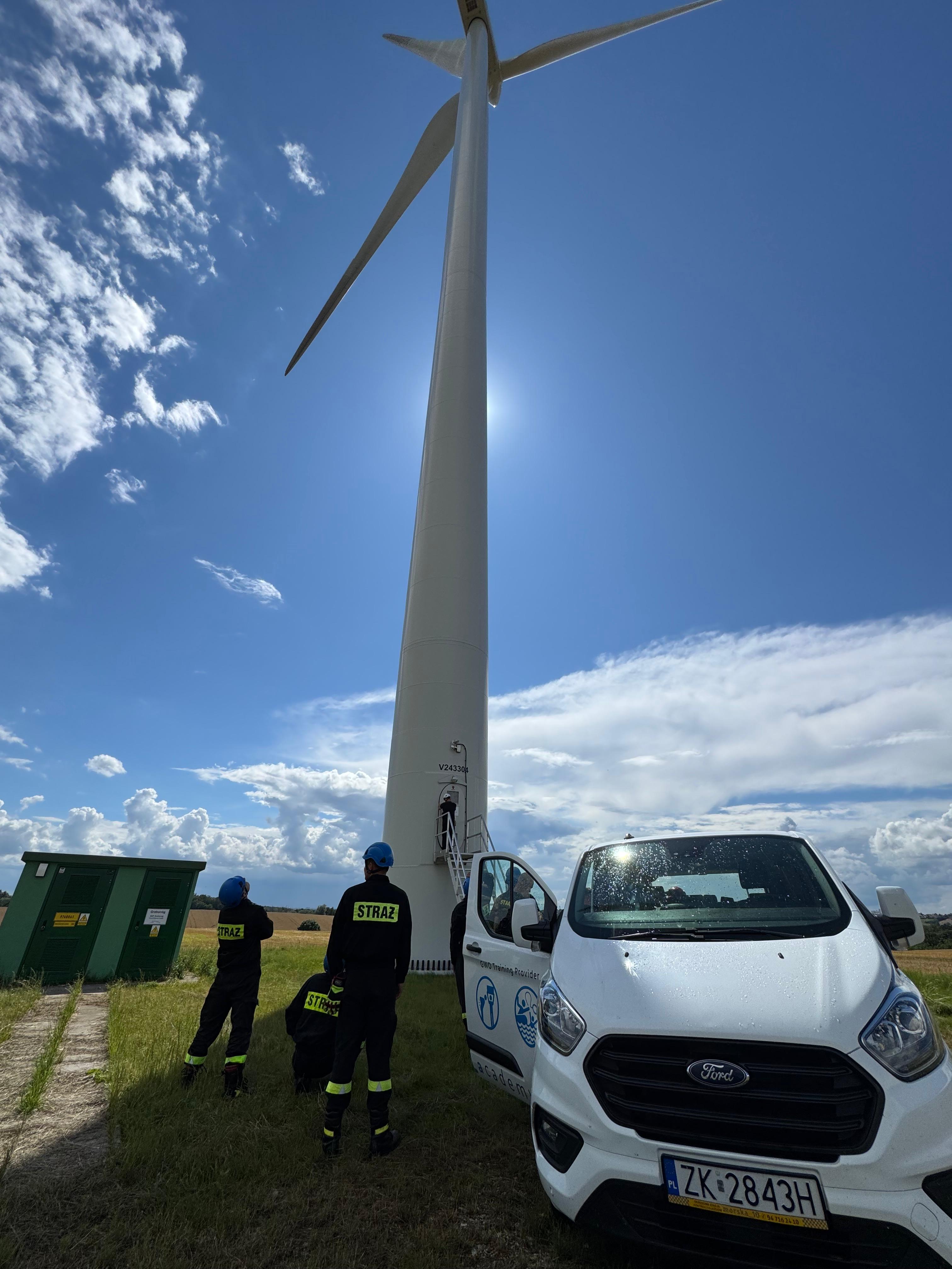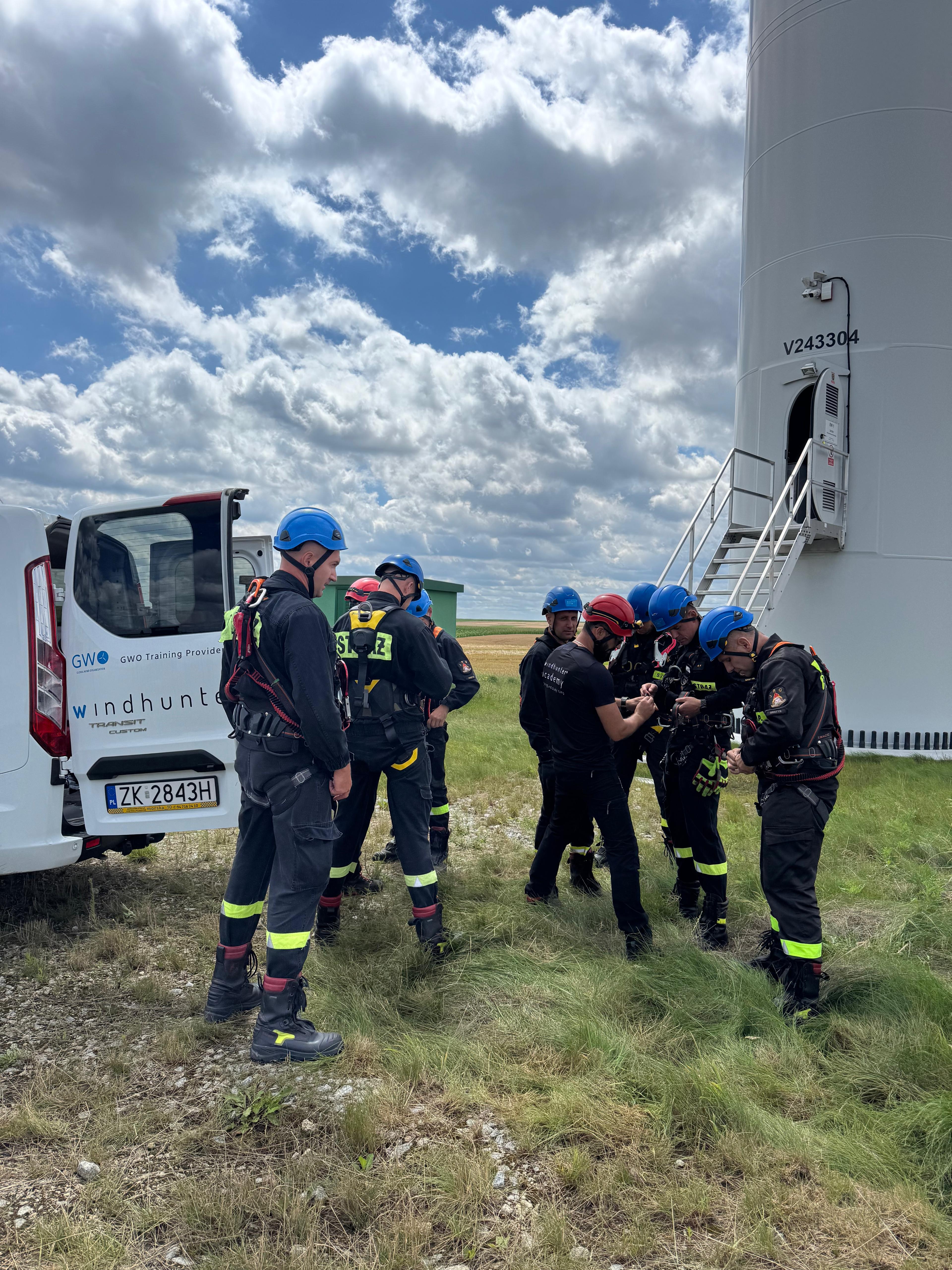 22 lipca 2025 roku odbyło się specjalistyczne szkolenie dla funkcjonariuszy Państwowej Straży Pożarnej, poświęcone postępowaniu w przypadku wystąpienia zagrożeń na turbinach wiatrowych. Organizatorem wydarzenia była firma Qair Polska S.A., a szkolenie przeprowadziła doświadczona kadra instruktorska firmy Windhunter.