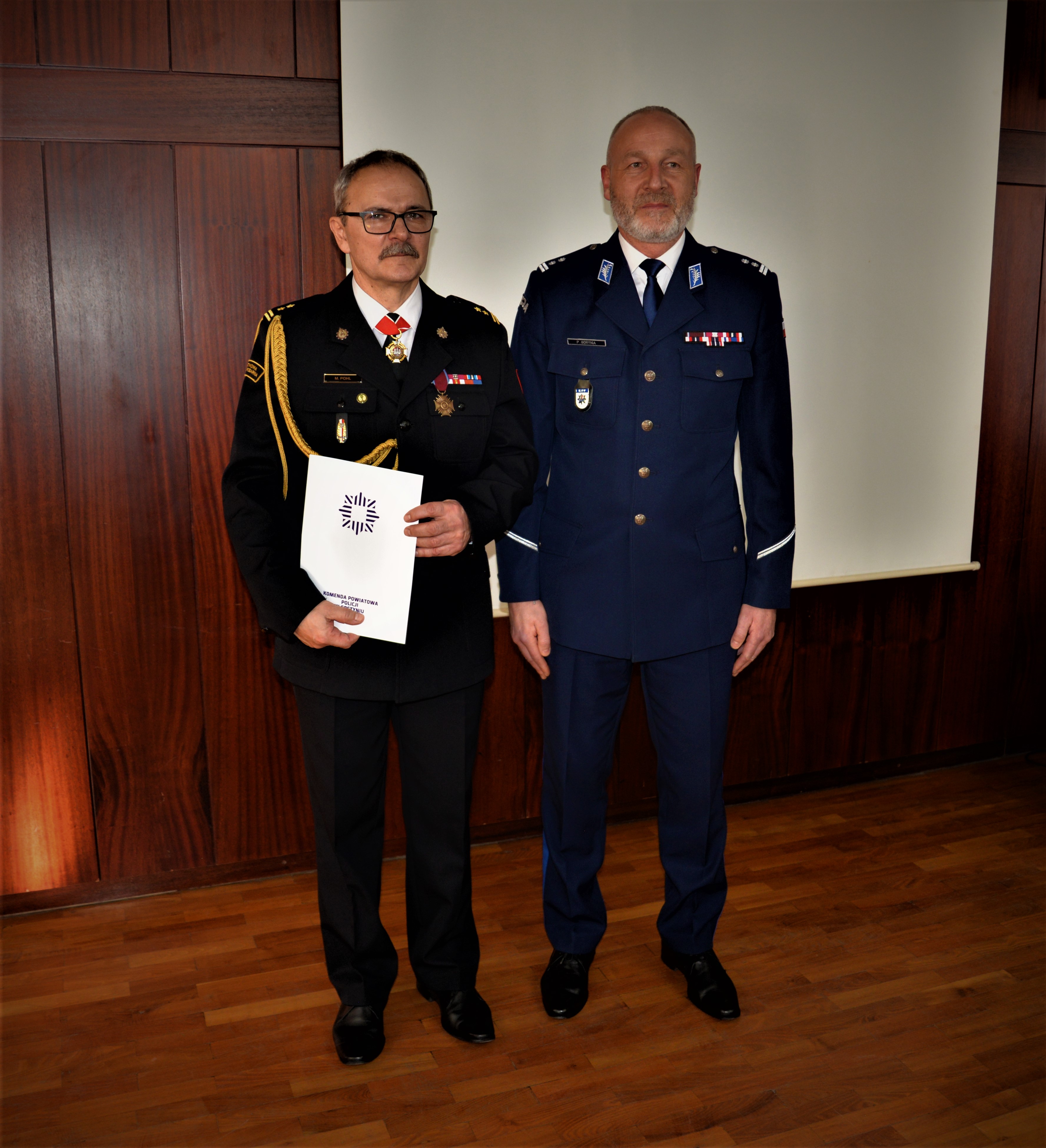 Przechodzący na zaopatrzenie emerytalne Komendant złożył meldunek o zakończeniu służby bryg. Robertowi Natunewiczowi - Zastępcy Wielkopolskiego Komendanta Wojewódzkiego Państwowej Straży Pożarnej w Poznaniu, który podziękował za wieloletnią współpracę, realizację powierzonych zadań oraz oddaną służbę w szeregach Państwowej Straży Pożarnej.