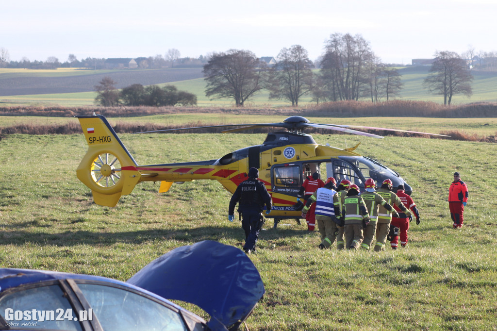 17 stycznia 2023 roku o godzinie 8:39 do Stanowiska Kierowania Komendanta Powiatowego Państwowej Straży Pożarnej w Gostyniu wpłynęło zgłoszenie o zabezpieczeniu miejsca lądowania śmigłowca Lotniczego Pogotowia Ratunkowego, w związku z wypadkiem drogowym na drodze wojewódzkiej pomiędzy Gostyniem a Kunowem. Po przybyciu na miejsce zdarzenia i przeprowadzonym rozpoznaniu stwierdzono, że w zdarzeniu brał udział samochód osobowy, który wypadł z drogi na ścieżkę rowerową, a następnie koziołkował i zatrzymał się na polu. Samochodem podróżowała jedna osoba, która w momencie dojazdu zastępów straży pożarnej znajdowała się poza pojazdem, pod opieką policji. Strażacy udzielili osobie poszkodowanej kwalifikowanej pierwszej pomocy, a następnie przekazali przybyłemu na miejsce zdarzenia Zespołowi Ratownictwa Medycznego. Działania straży pożarnej polegały na zabezpieczeniu miejsca zdarzenia, udzieleniu kwalifikowanej pierwszej pomocy osobie poszkodowanej, rozłączeniu akumulatora w samochodzie uczestniczącym w wypadku oraz zabezpieczeniu miejsca lądowania śmigłowca LPR. W działaniach udział wzięły: 2 zastępy JRG Gostyń, ZRM oraz Policja.