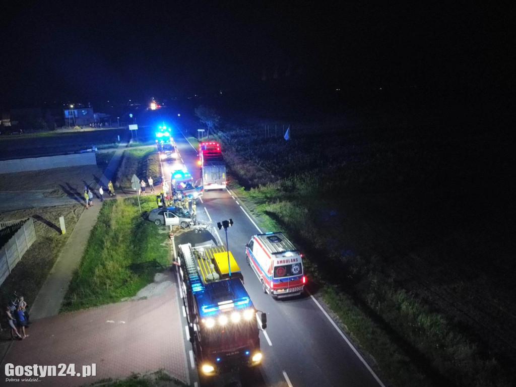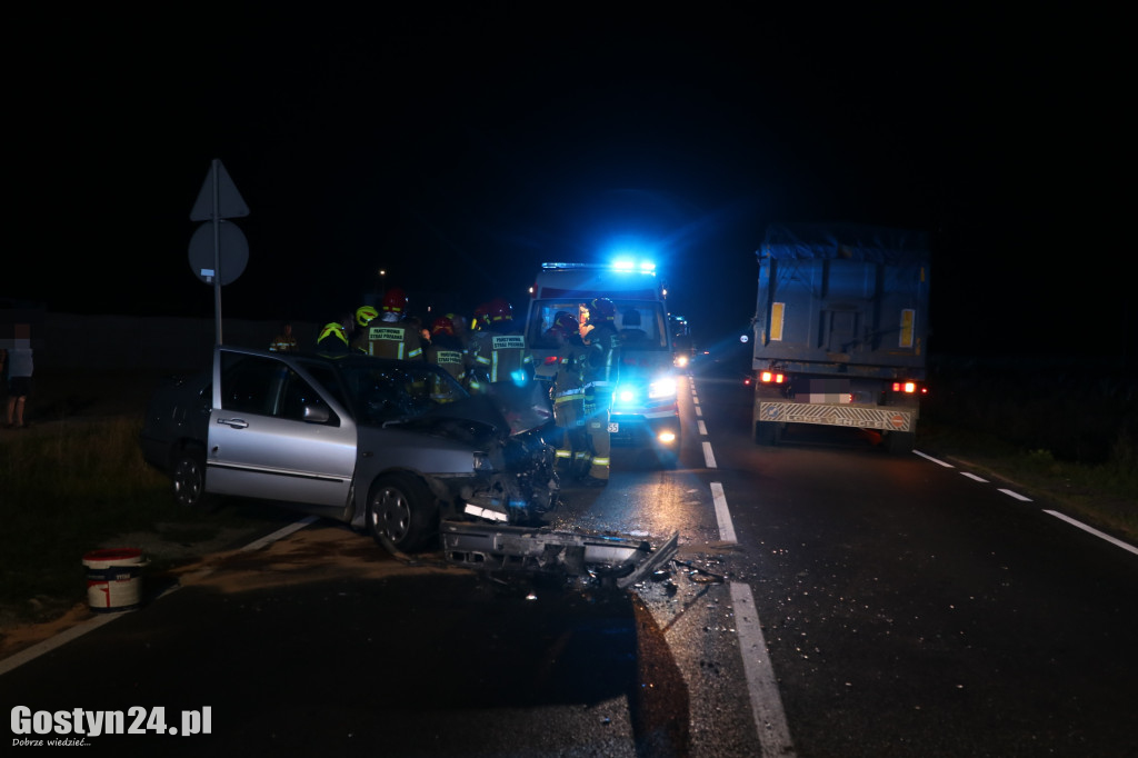 16 sierpnia 2023 r. o godzinie 23:10 Stanowisko Kierowania Komendanta Powiatowego w Gostyniu otrzymało zgłoszenie o wypadku dwóch samochodów osobowych w miejscowości Kuczyna. Do zdarzenia zadysponowano JRG Gostyń oraz OSP Krobia. Po dojeździe zastępów i przeprowadzonym rozpoznaniu, stwierdzono zderzenie samochodu osobowego i ciężarowego. Osobie podróżującej samochodem osobowym udzielono kwalifikowanej pierwszej pomocy polegającej na wsparciu psychicznym, opatrzeniu ran oraz stabilizacji odcinka szyjnego kręgosłupa. Po dojeździe na miejsce zdarzenia Zespołu Ratownictwa Medycznego, lekarz podjął decyzję o zabraniu osoby poszkodowanej do szpitala.
