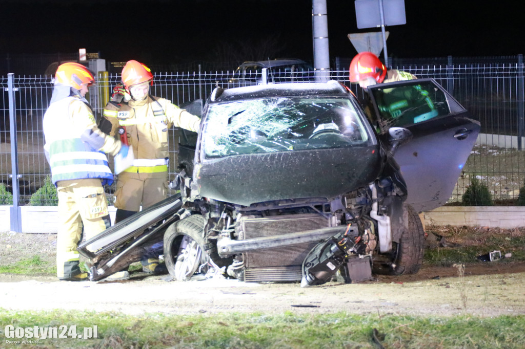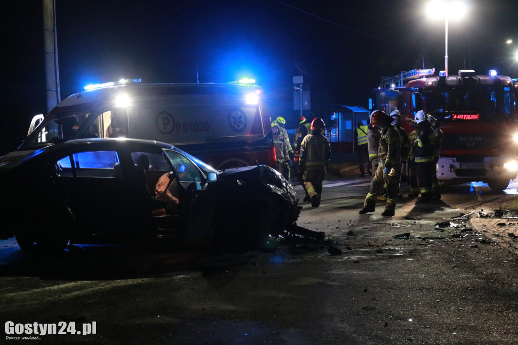 26 listopada 2023 roku o godzinie 22:33 do Stanowiska Kierowania Komendanta Powiatowego Państwowej Straży Pożarnej w Gostyniu wpłynęło zgłoszenie o wypadku drogowym w miejscowości Karzec. Po dojeździe na miejsce zdarzenia pierwszych zastępów ustalono, że w zdarzeniu udział brały 2 samochody osobowe. Samochodami podróżowało łącznie 5 osób, w tym jedna osoba była zakleszczona w pojeździe. Strażacy przy pomocy narzędzi hydraulicznych wykonali dostęp do osoby poszkodowanej, a następnie ewakuowali ją na zewnątrz pojazdu i udzielili kwalifikowanej pierwszej pomocy (KPP). Ewakuowana osoba przekazana została zespołowi ratownictwa medycznego (ZRM). W międzyczasie strażacy udzielali KPP pozostałym osobą poszkodowanym, które samodzielnie opuściły pojazdy. Obecny na miejscu zdarzenia lekarz podjął decyzję o przetransportowaniu 3 osób do szpitala. Po wykonaniu czynności przez policjantów strażacy usunęli z jezdni resztki powypadkowe oraz płyny eksploatacyjne.